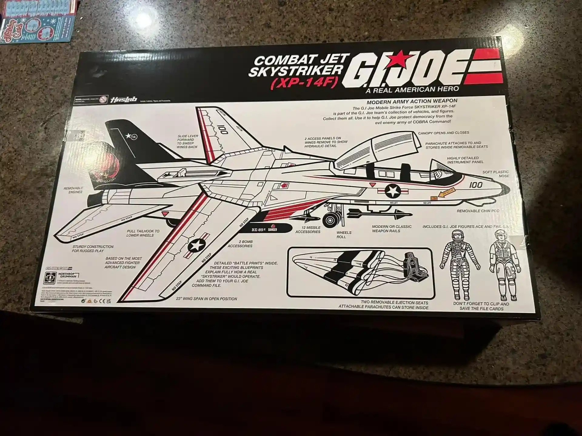 Happy New Year everyone! We are going to start 2023 off with a bang as the GI Joe HASLAB Skystriker is getting closer to being in our hands! Thanks to Mike Wright for posting photos of his GI Joe HASLAB Skystriker that he opened thru an eBay auction. The photos show even more detail of the complete packaging including instructions, sticker sheets, flight stand, and all the card back packages of the exclusive Skystriker HASLAB O-Ring figures.