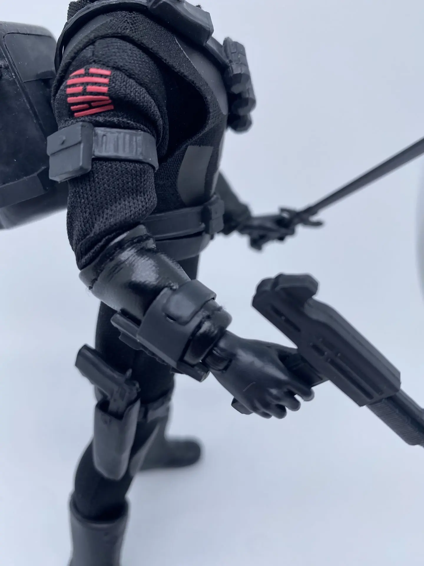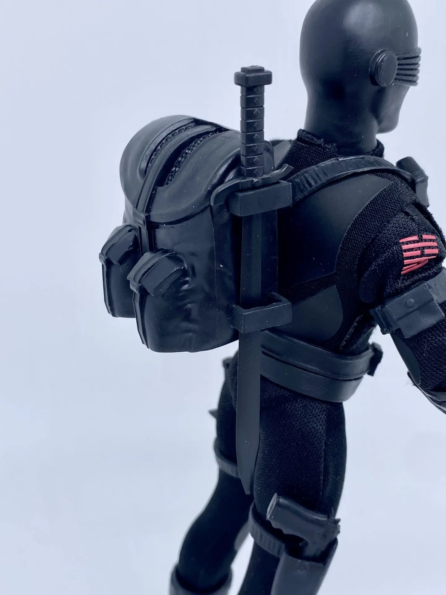 Snake Eyes includes his classic backpack as well, which has a slot on the right side to store his long Mikimoto Sword. His backpack stores on his back just like that of Storm Shadows with a plastic angled piece that slots into a holster in the back of his chest strap. Let’s take a closer look at Snake’s Eye below.