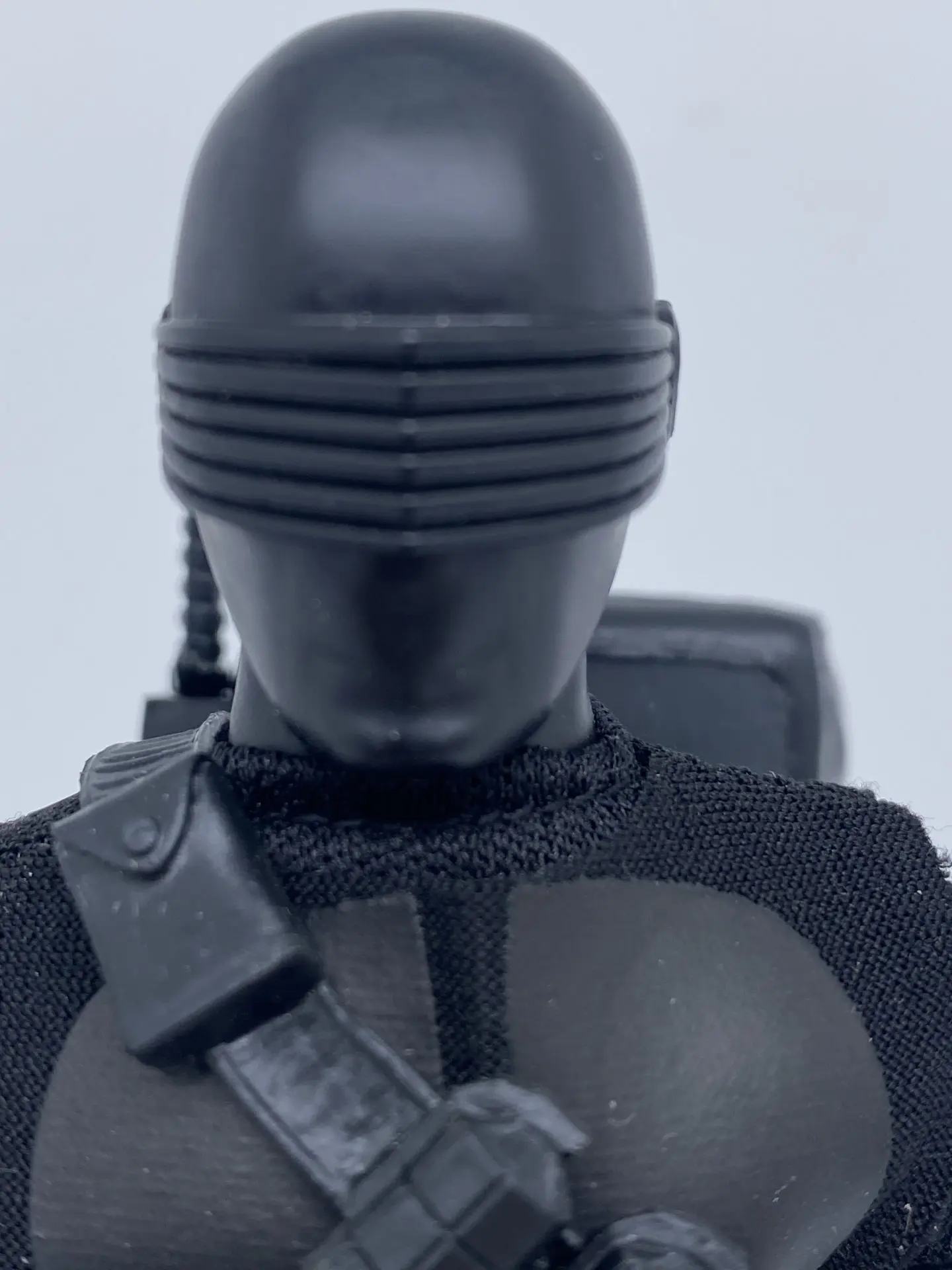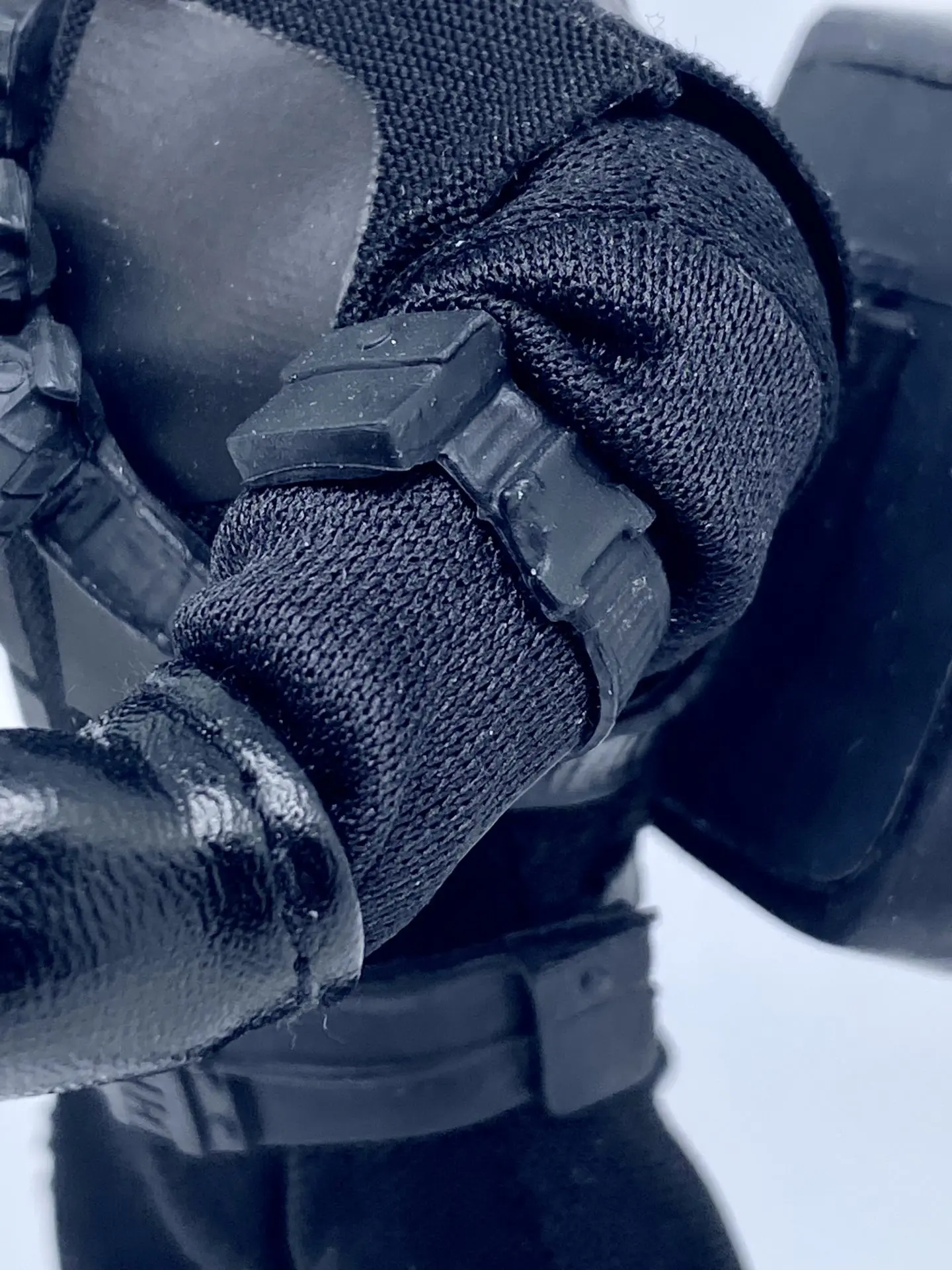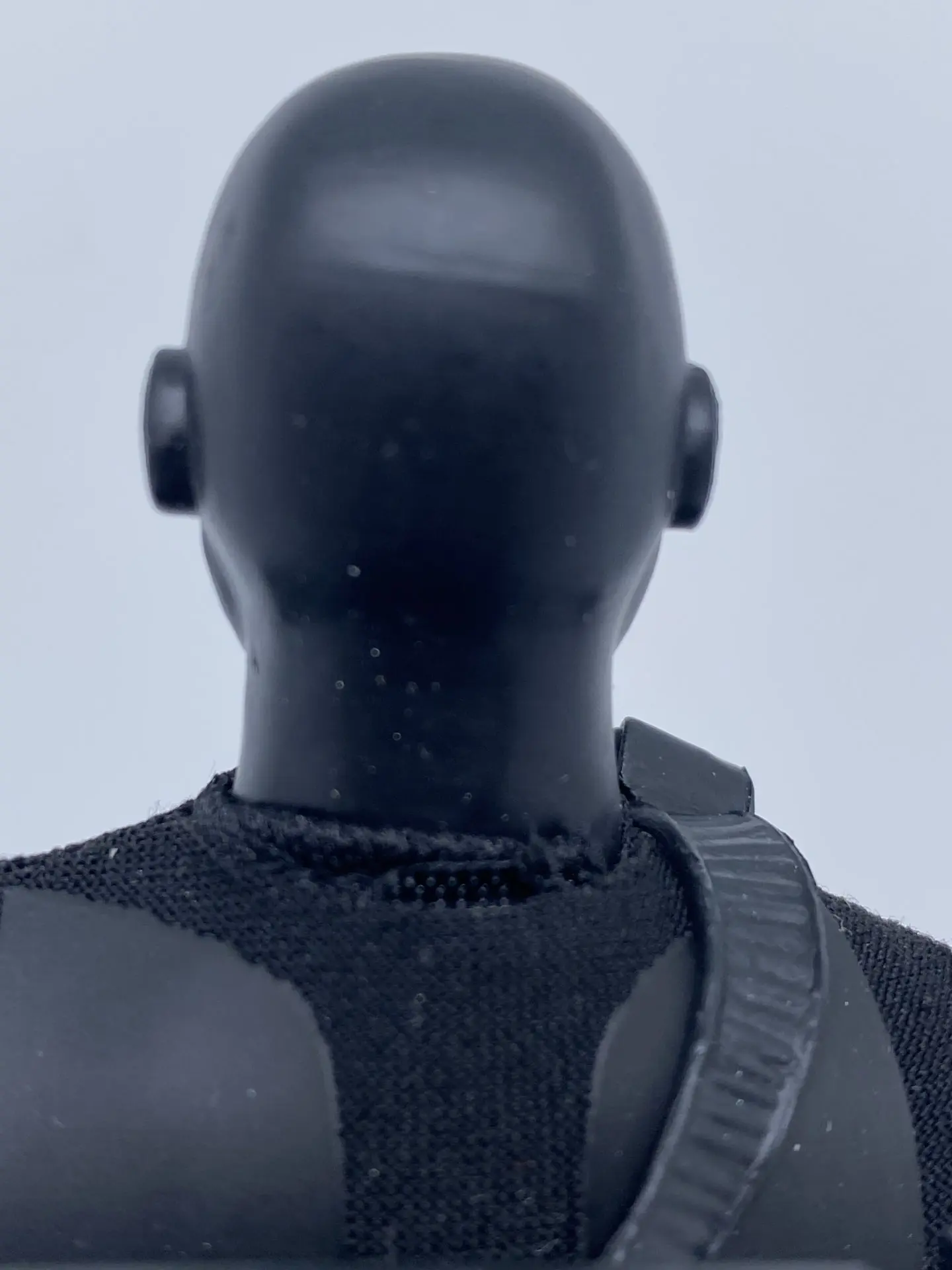 Storm Shadows’ head is made of a hard plastic, just like the classic Mego action figures, and has a classic Storm Shadow look, with piercing brown eyes and beautifully painted eyebrows. There are simple accent lines running across either side of his head and you can see crease marks where his nose and mouth would be, along with his ears. This was a wonderful interpretation of the vintage O-Ring version of Strom Shadow.