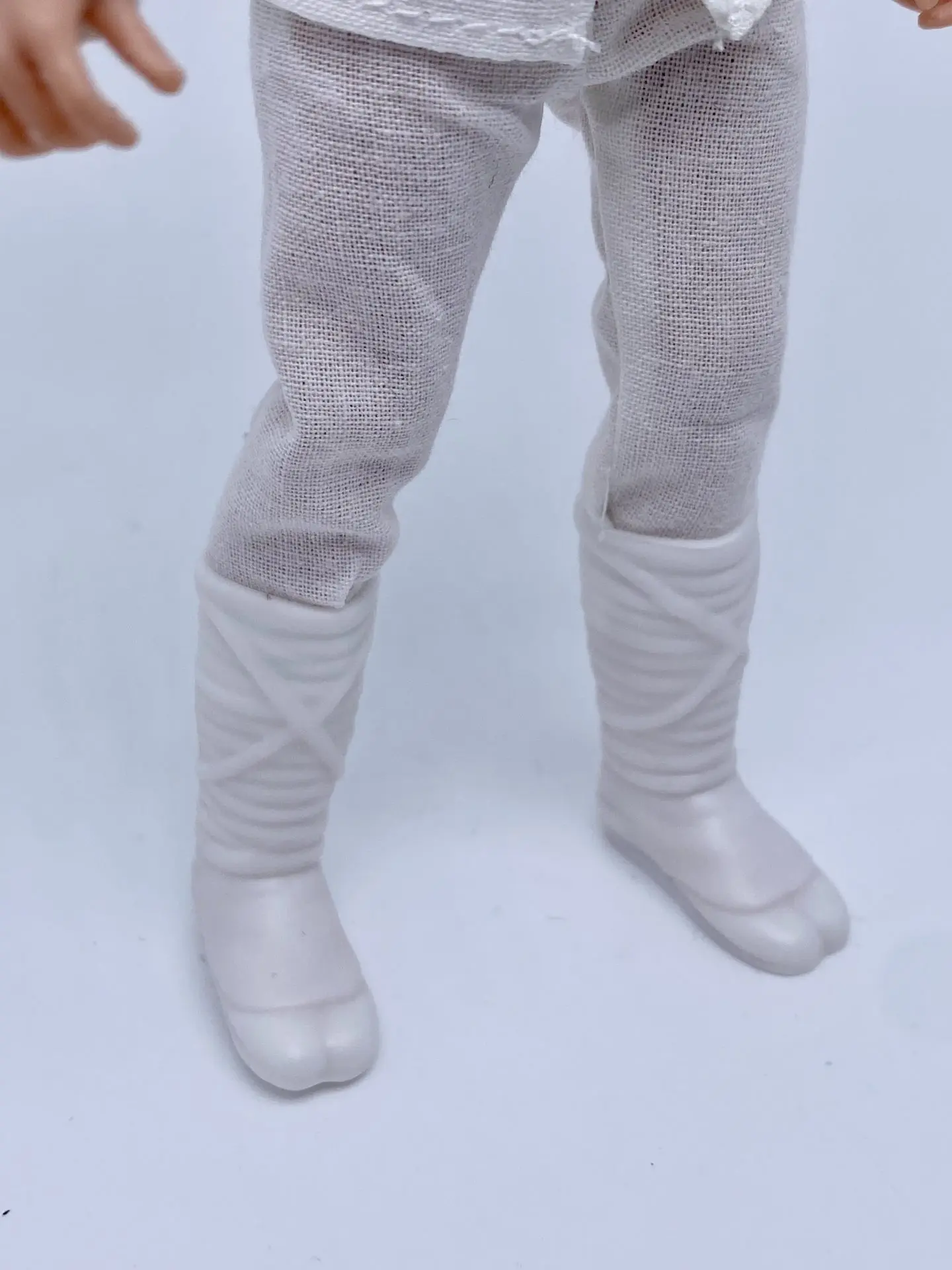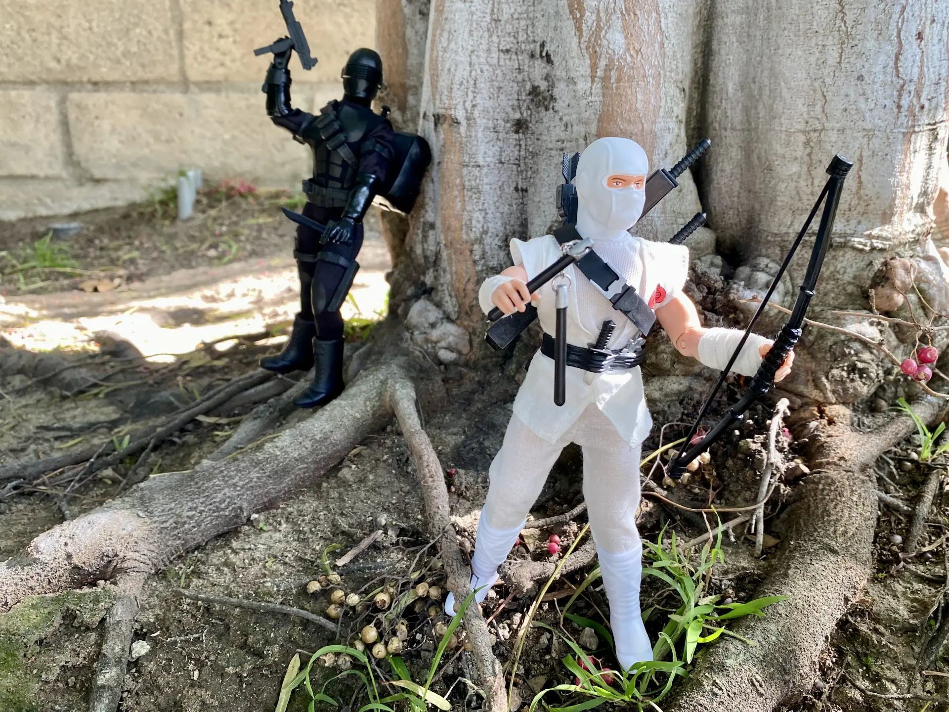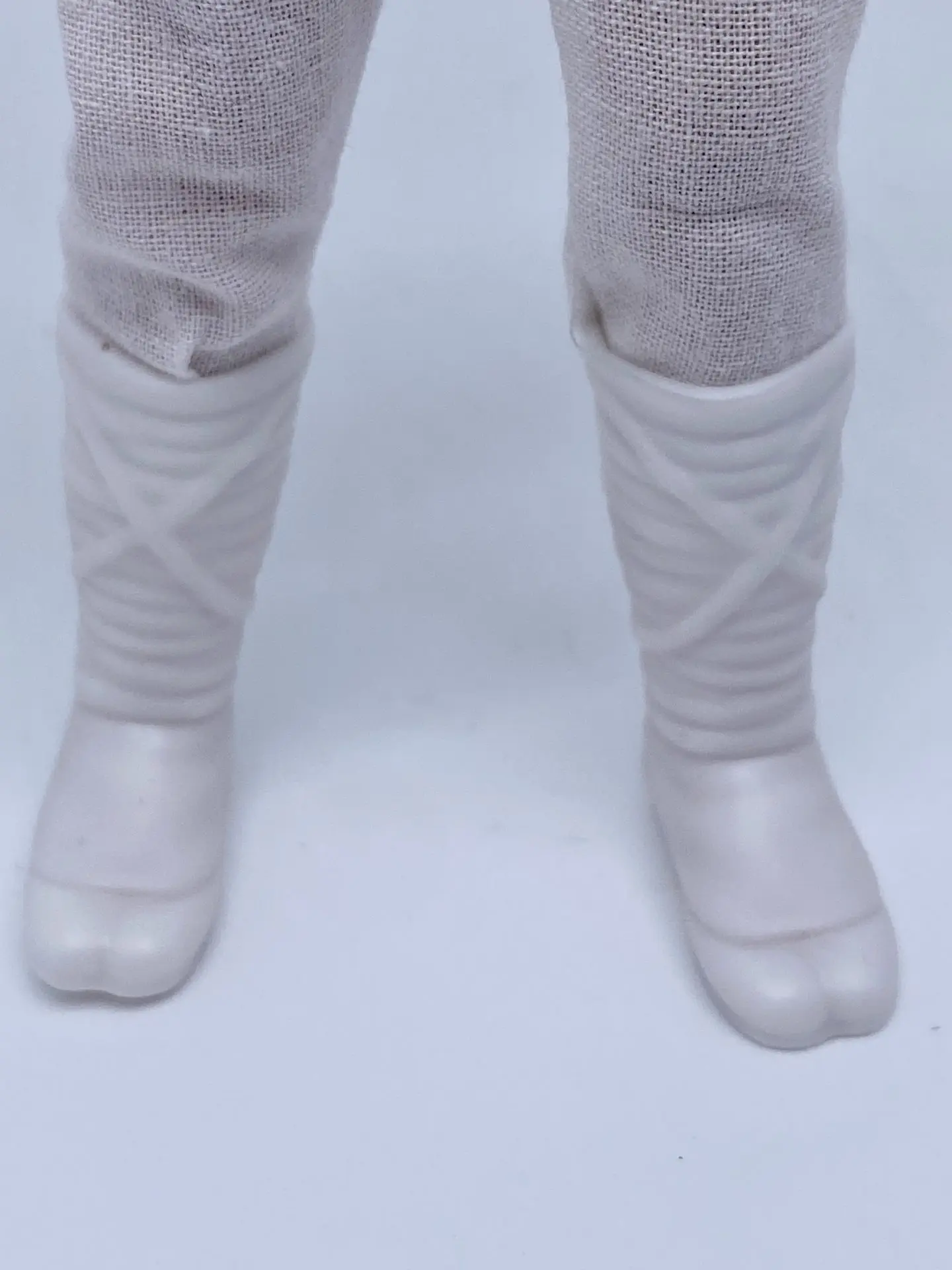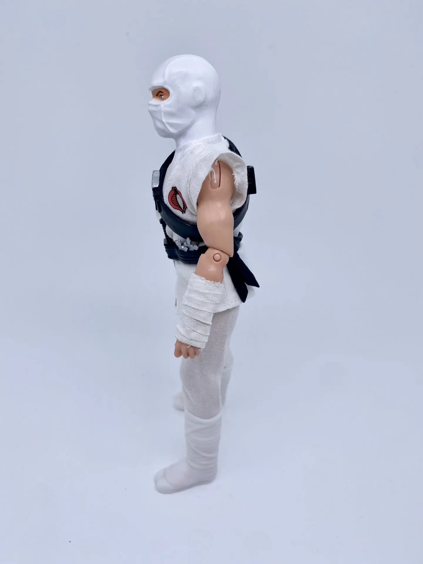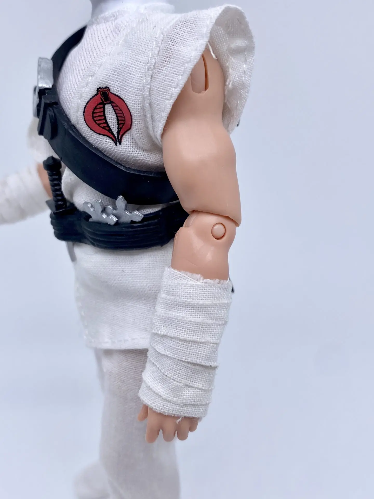 Storm Shadows’ pants are made of the same material as his GI and are just a simple white design, again beautifully stitched and of high-quality material His boots are a soft white plastic and include the molded detail for his ninja feet and some bootstraps. His boots are very well done, matching the vintage O-ring Storm Shadow beautifully.