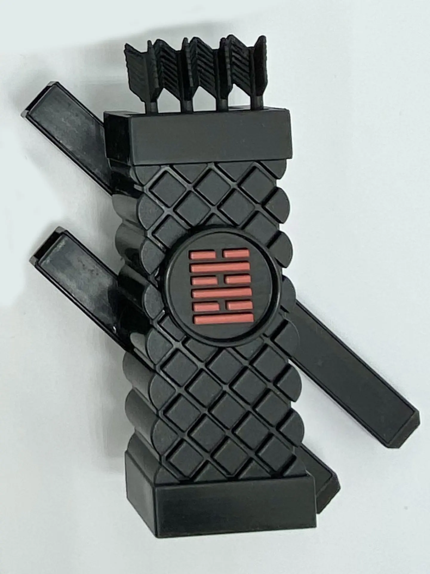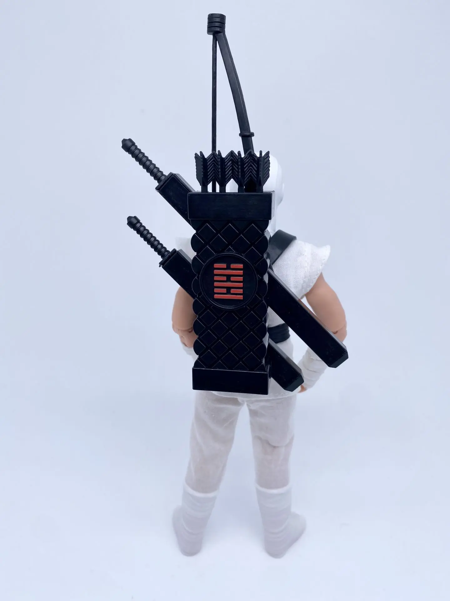 Let’s take a closer look at Mego’s interpretation of these two rival’s classic backpack designs. The Classic Storm Shadow Backpack has a painted red Arashikage logo, with a criss cross pattern on the back. It also has 4 molded Quivers, and storage slots for Storm Shadow’s bow, and his 2 different sized swords. It’s a great interpretation of the vintage version. Snake Eyes’ backpack too matches his vintage version. A simple backpack with two large pouches along the bottom, a molded strap in the middle and a holster for Snake Eye’s long Mikimoto Sword to holster into.