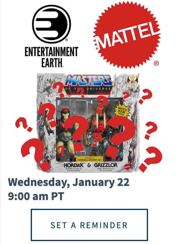 Given that the Hordak & Grizzlor Evil Horde 2-Pack was discovered on Target’s website, we are hedging our bets that Entertainment Earth’s Drop Zone will be putting this set up for preorder on Wednesday, January 22, 2025 at 9am PT. Apologies in advance if we are incorrect but there is no harm in checking.