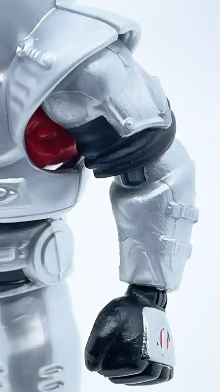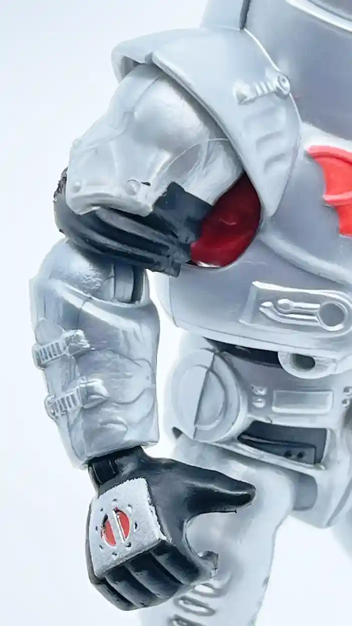 The front of the chest armor is intricately designed and the red Horde symbol really stands out from the silver paint. There are sculpted mechanical parts on the front part of the shoulder armor as well as indentations that create a ripple effect as they connect to the chest piece. With shoulder pads being a major style of dress in the 1980’s, I am not surprised that the chest armor reminds me of a point in time where I would love to forget that part of fashion history. Although timelessly immortalized in the sculpt, the Horde Trooper wears the shoulder padded look very well, which makes him look for formidable.