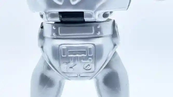 The horde Trooper has a very intricately detailed crotch! Ye, I said it! The cool yellow symbol in the middle adds a splash of color that provides a much-needed focal point. The metal pieces and rivets also add that extra level of detail and the black armor ties in with the rest of the figure. On the back, he’s got some robotic detailing on his booty, which looks more like a fuse panel if the Horde Trooper had an electrical issue, you could pop it off like a pair of trap door pajamas.