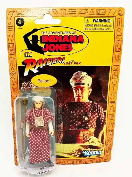 Belloq is another wonderful recreation of the original 1980’s Kenner action figure. He comes complete with his red checkered soft goods robe, gold chest plate and golden staff! Kenner really nailed it when it comes to recreating a retro version of him. I really love the details on his outfit, as Hasbro did an incredible job at recreating the original figure! The Card Back is similar to rest but this one includes a portrait of Belloq in one of the caverns holding his golden staff, right from the Raider’s of the Lost Ark movie. The rear shows the cross sell of the rest of the wave.