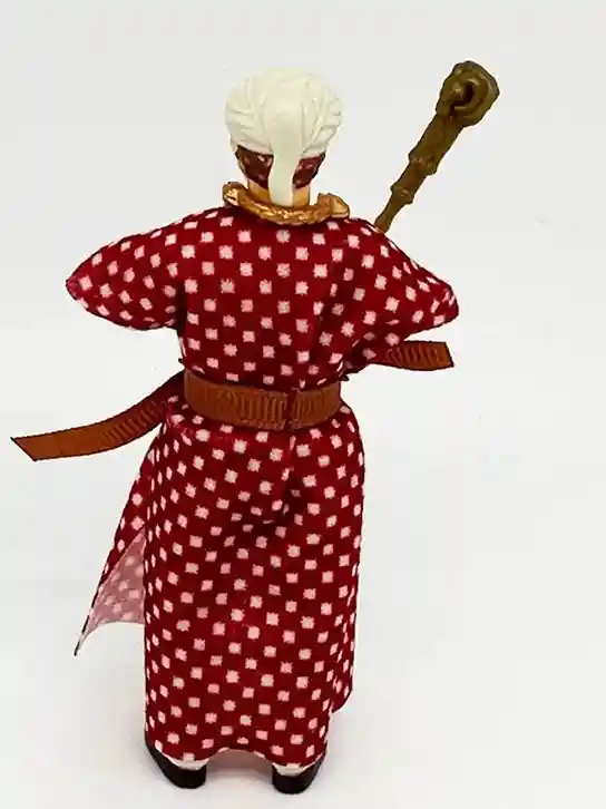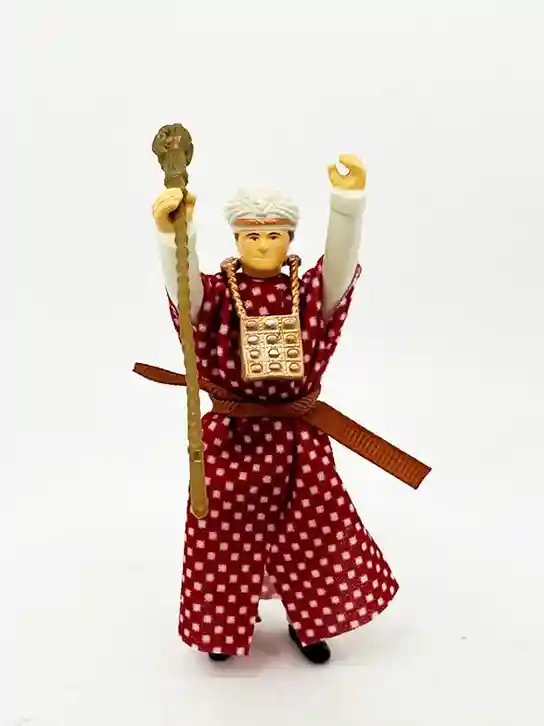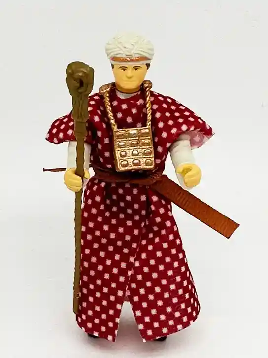 Belloq includes his golden staff and comes with a very detailed gold colored chest plate around his neck. The staff and chest plate both have a lot of very nice details sculpts on them. They chest plate has some circlular patterns sculpted into it that have some silver and copper accents. The staff has a ram head design.