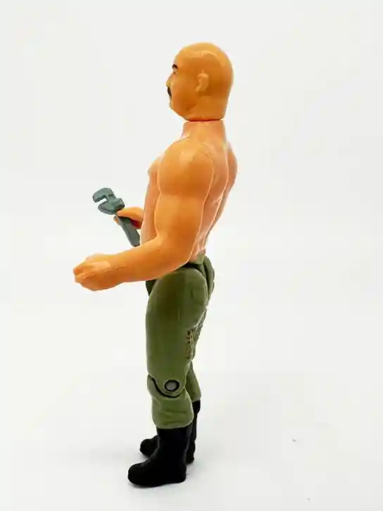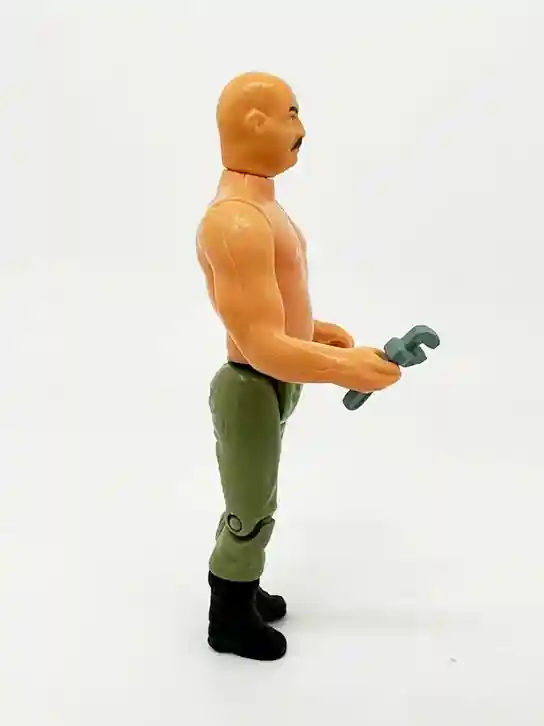 The German Mechanic includes his signature wrench. It is made of a very soft plastic and is a soft greyish green color. The wrench has some nice sculpt so they did a good job on it over all. The mechanic does hold the wrench actually very well. Also, his right hand has that action feature included so he can wheeled that wrench at his enemies!