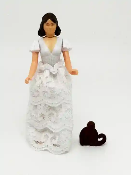 Marion Ravenwood, damsel in distress and companion to Indy in Raiders of the Lost Ark! Hasbro did an excellent job in recreating the original series 1 1982 action figure! She comes complete with a real soft goods lace skirt and her little monkey companion. The lace on her dress looks very detailed and very beautiful. Kenner did a great job in recreating the original vintage version.
