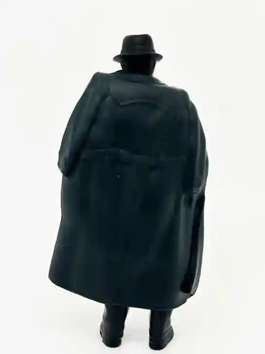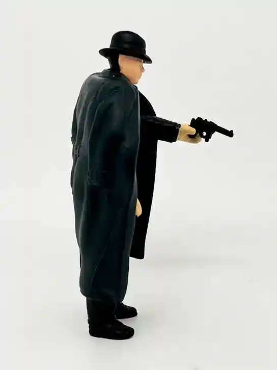 Below you can see what he looks like with his trench coat removed. You can see the snazy suit that he is wearing, and his sculpt it true to the vintage figure.