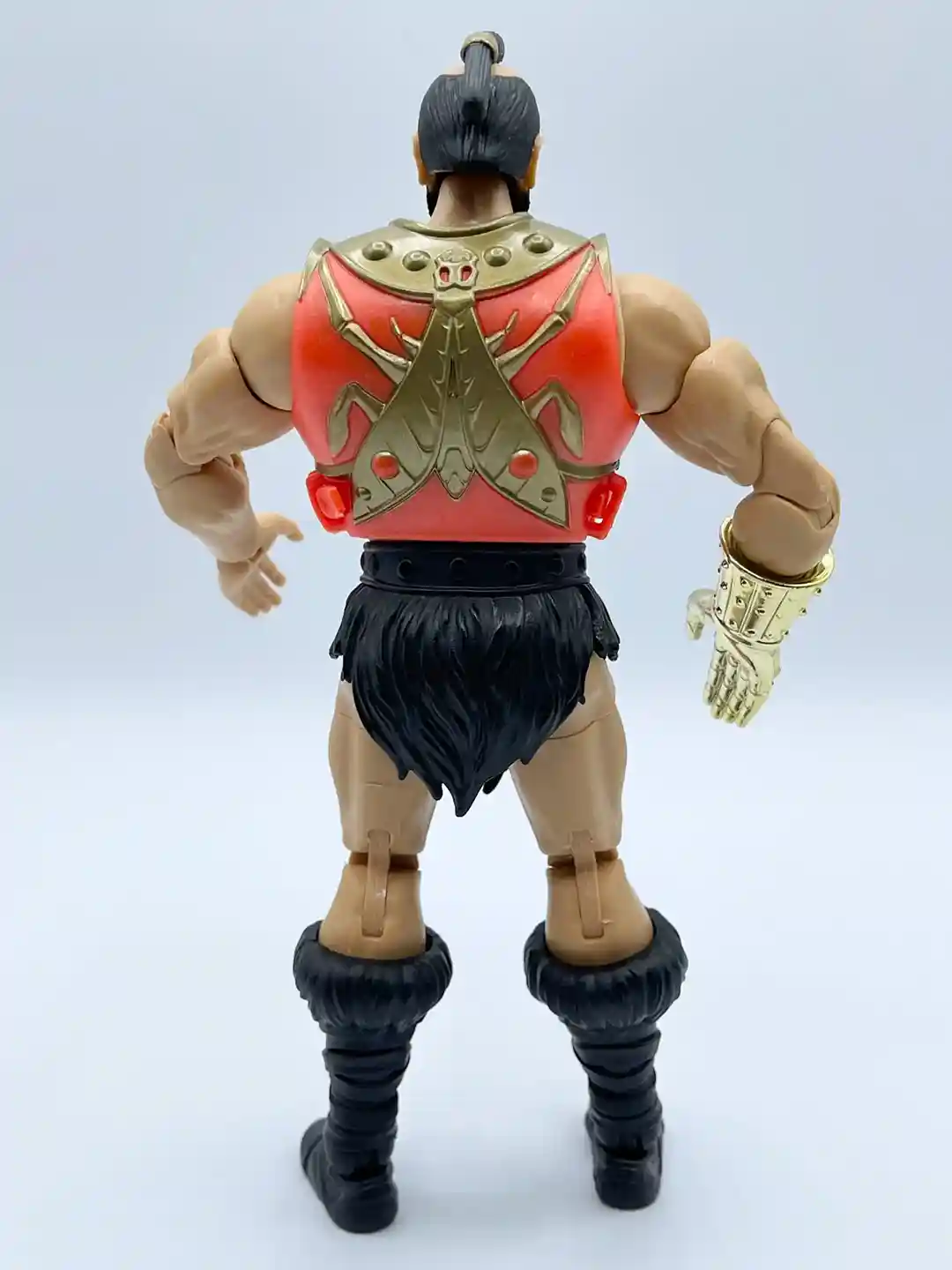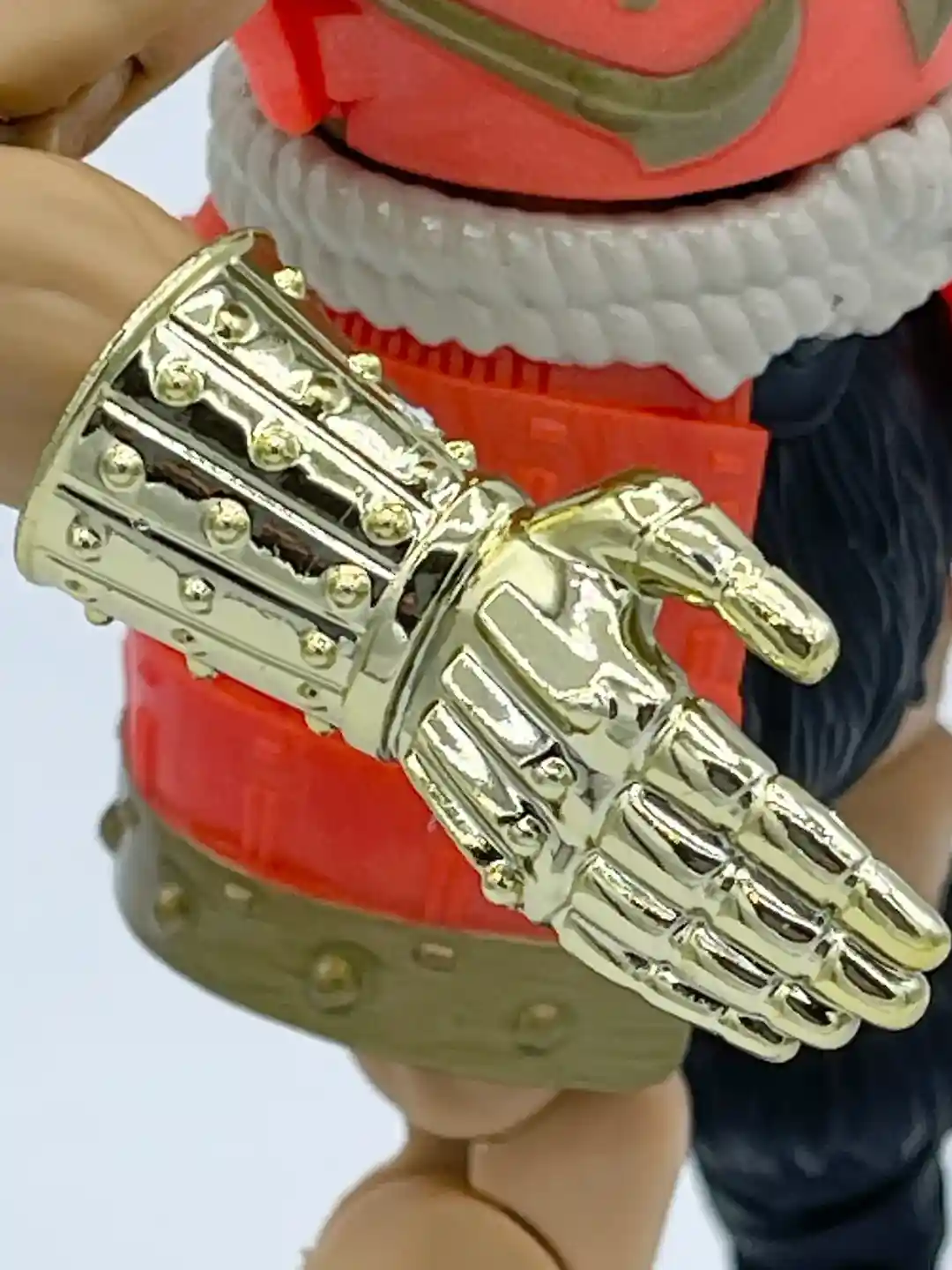 Jitsu’s right arm features his centerpiece, which is a shiny gold vac metal gauntlet that is the most form fitting we have ever seen on a MOTU figure. Although it is not diecast like Fisto’s fist, it is made of a lighter plastic and the sculpt shows off all the detail!