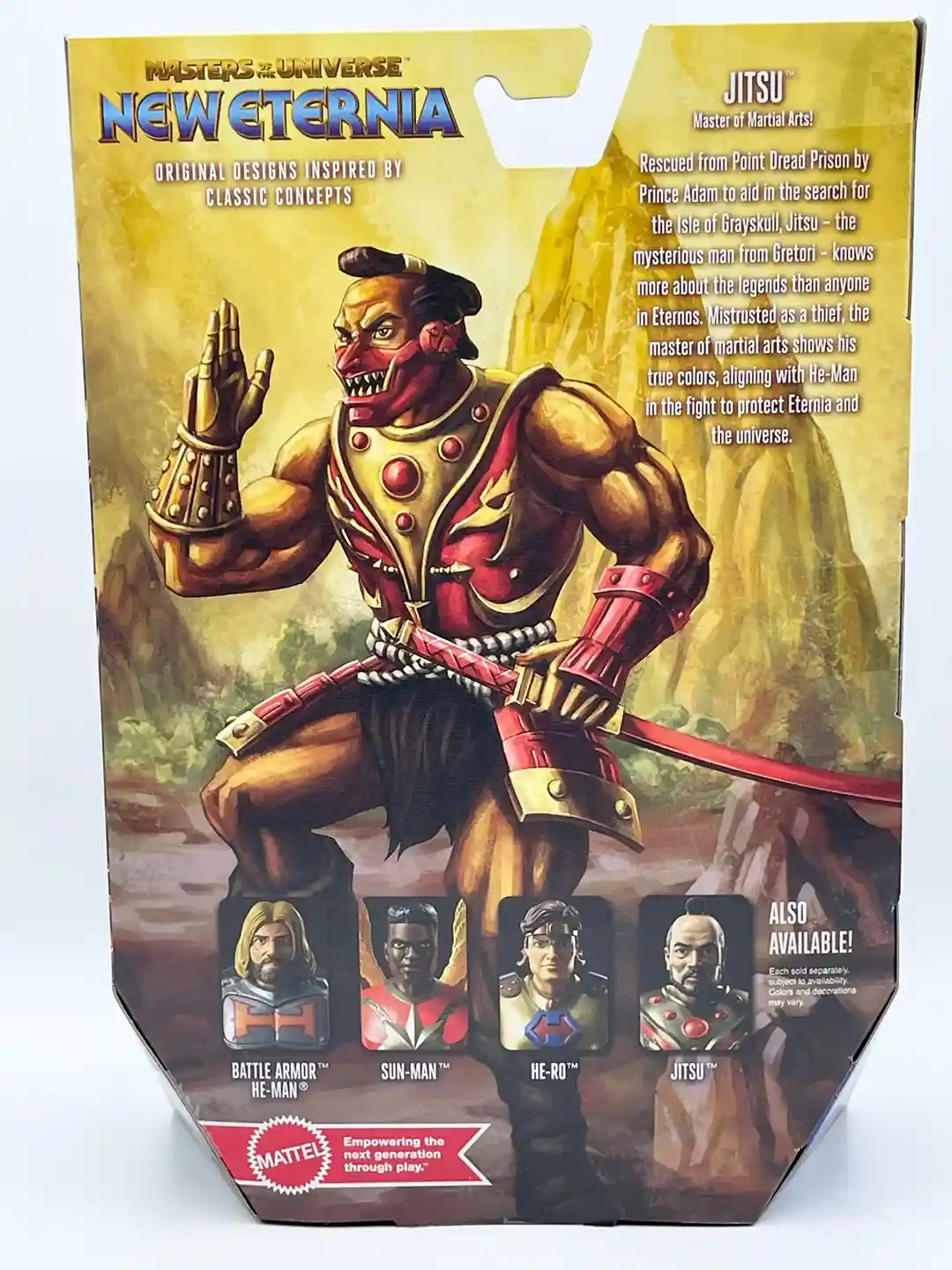 Rescued from Point Dread Prison by Prince Adam to aid in the search for the Isle of Grayskull, Jitsu – the mysterious man from Gretori – knows more about the legends than anyone in Eternos. Mistrusted as a thief, the master of Martial Arts shows his true colors, aligning with He-Man in the fight to protect Eternia and the Universe.