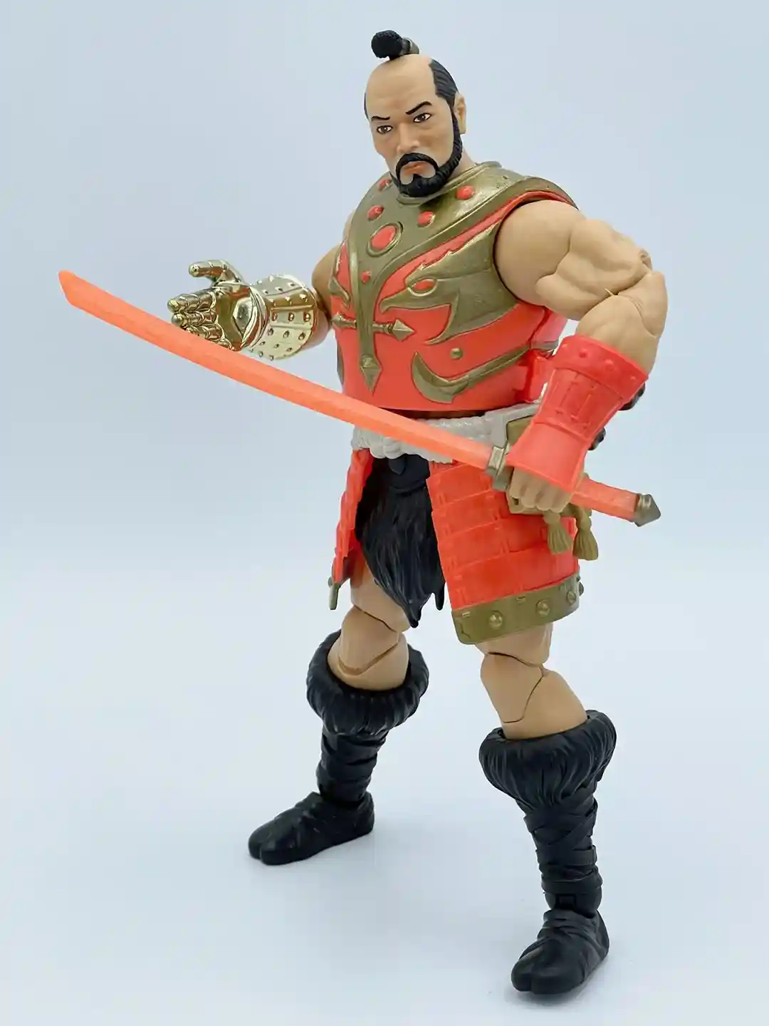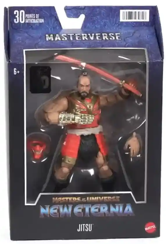 Jitsu is the latest figure in the Masterverse New Eternia line! Revealed back in Mid March, 2022, the Masterverse Jitsu looks stunning in his samurai chest and waist armor! He comes complete with a samurai sword and a VAC METAL chopping hand! Jitsu comes dressed in an authentic Japanese style samurai outfit! His accessories include a samurai sword, samurai armor, removable samurai style waist armor, wrist bracer that is removable, an alternate hand and a half mask!