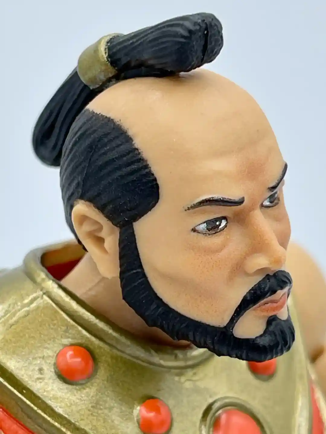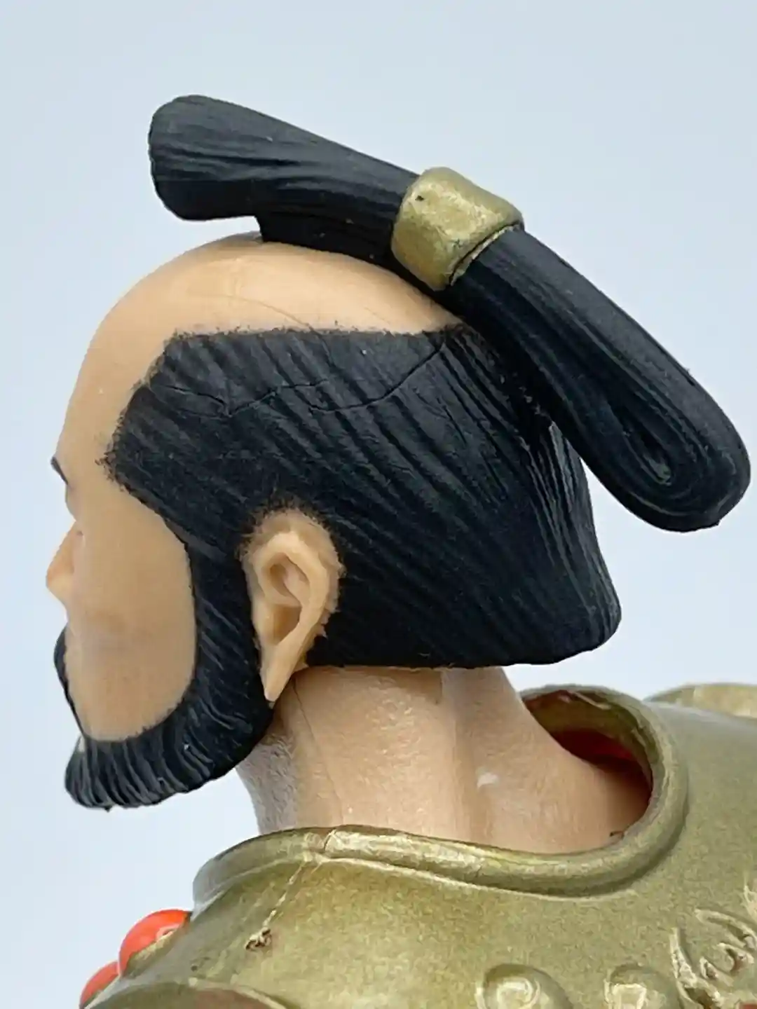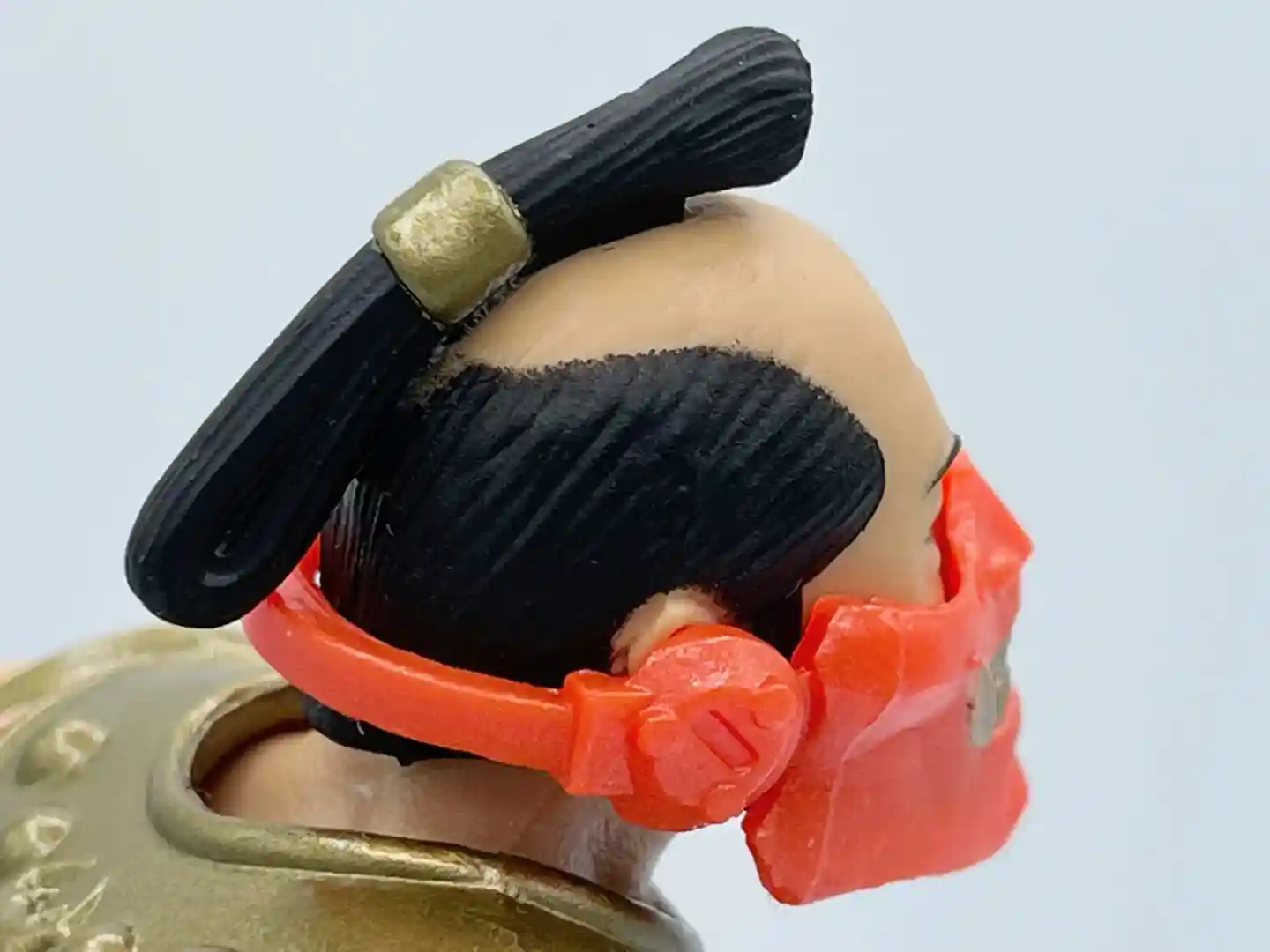 Jitsu’s face sculpt is one of the best versions we have seen and he is given a very pensive look on his face. He also has a reddish complexion to his face, which brings out his facial features. He has a chonmage (丁髷), which is a type of traditional Japanese topknot haircut worn by men. It is most commonly associated with the Edo period (1603–1867) and samurai, and in recent times with sumo wrestlers. It was originally a method of using hair to hold a samurai kabuto helmet steady atop the head in battle, and became a status symbol among Japanese society. In a traditional Edo-period chonmage, the top of the head is shaved. The remaining hair was oiled and waxed before being tied into a small tail folded onto the top of the head in the characteristic topknot. This hairstyle travels from the back of the head and runs along the scalp towards the front of the head and sheds light as to why the top Jitsu’s head is shaved. The gold clip in the middle of his chonmage adds a lot of character to his hair sculpt and makes him look more refined.
