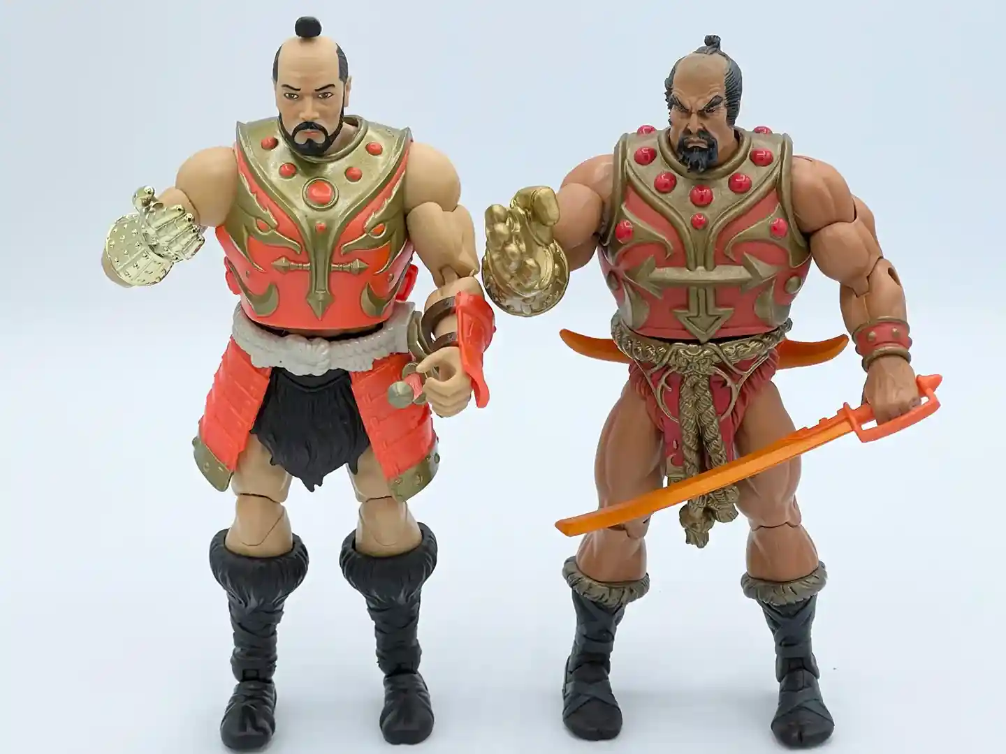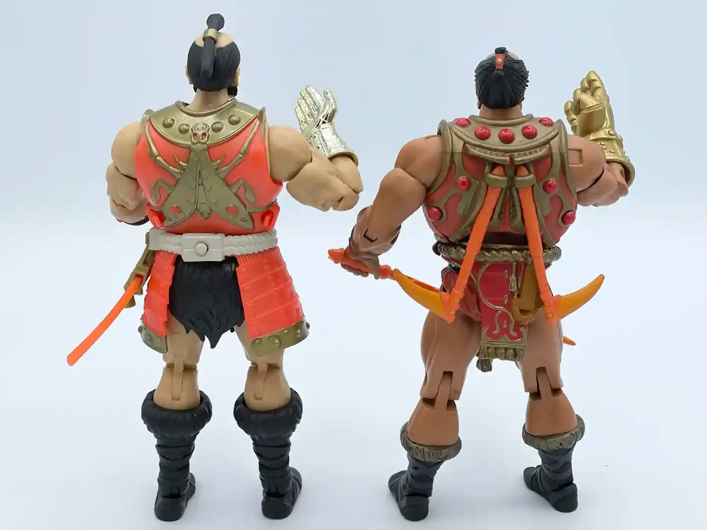 We like to say that this version of Jitsu is his softer side as his MOTU Classics counterpart has a very grizzled and aged look to him. Perhaps this is a younger version of Jitsu and a different stage in his life before he got mixed up with the likes of Skeletor. Looking at the figures side by side, you can also get a sense for how massive the Classics armor and bucks were and we really didn’t pay attention to this as there was nothing to compare them too but now we can! The Masterverse armor still retains the classic nature of design but with a more cohesive look to it.