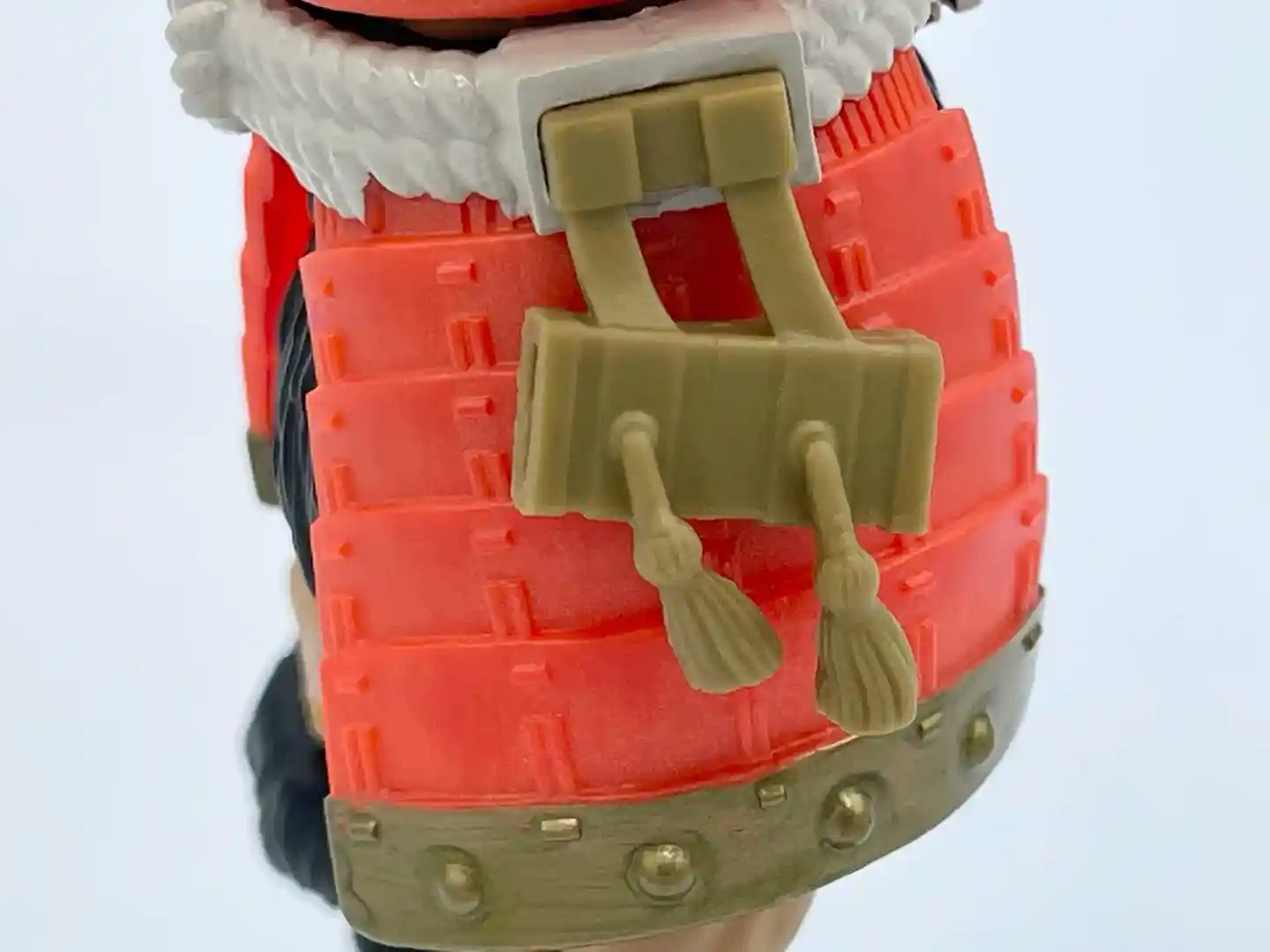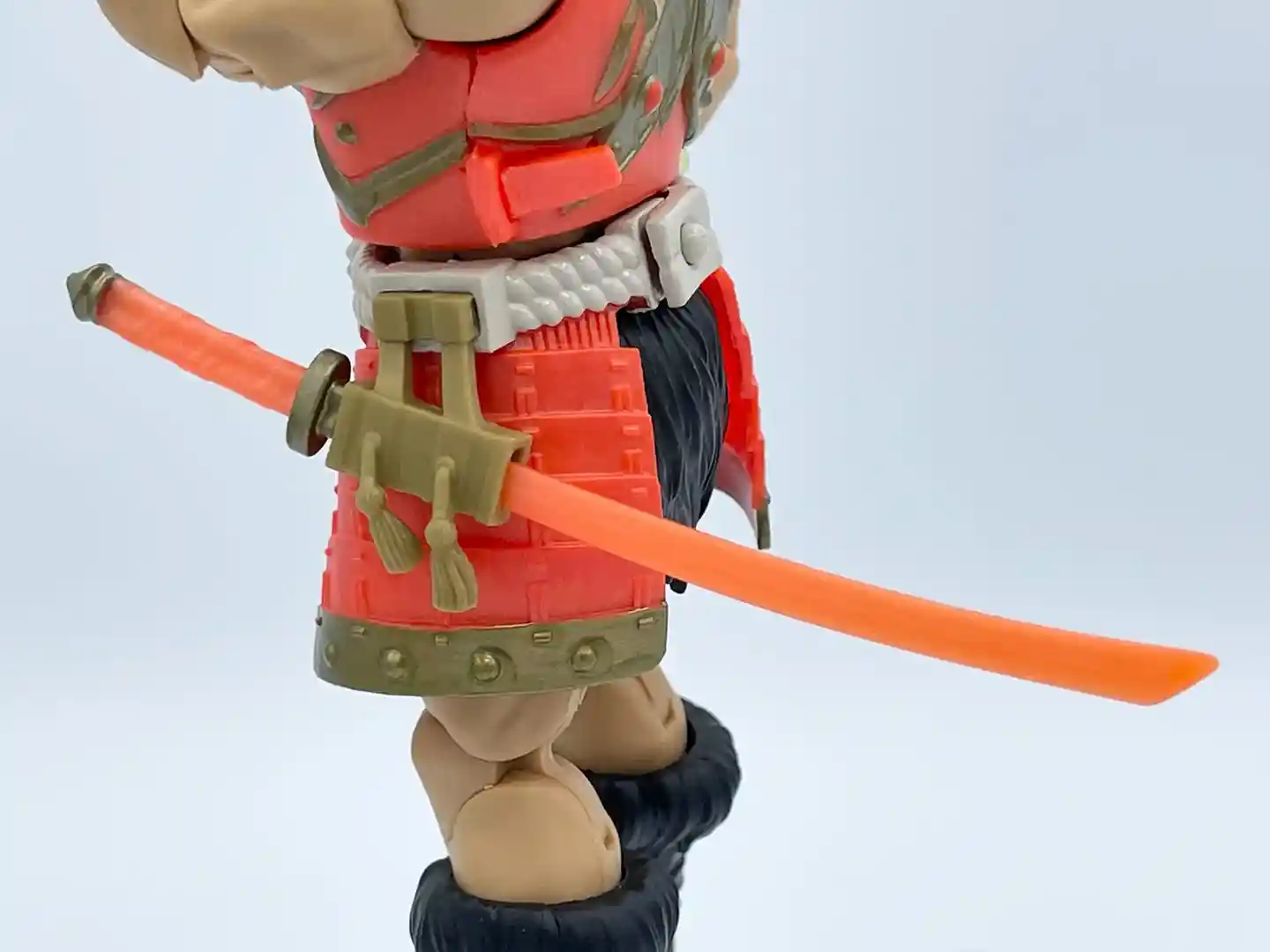 The figure itself looks fantastic as the golds and oranges play really well together! There are also gold tones on the clip for his hair, around the waist armor piece, and the sword scabbard, which ties everything in together.