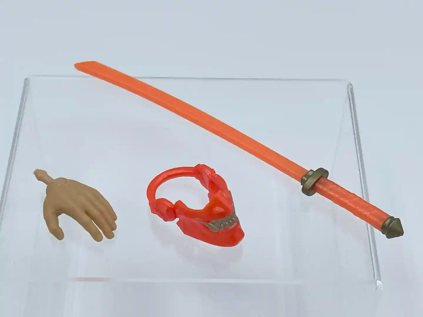 Jitsu comes with an extra open hand, his Samurai half mask, and his trust orange sword.