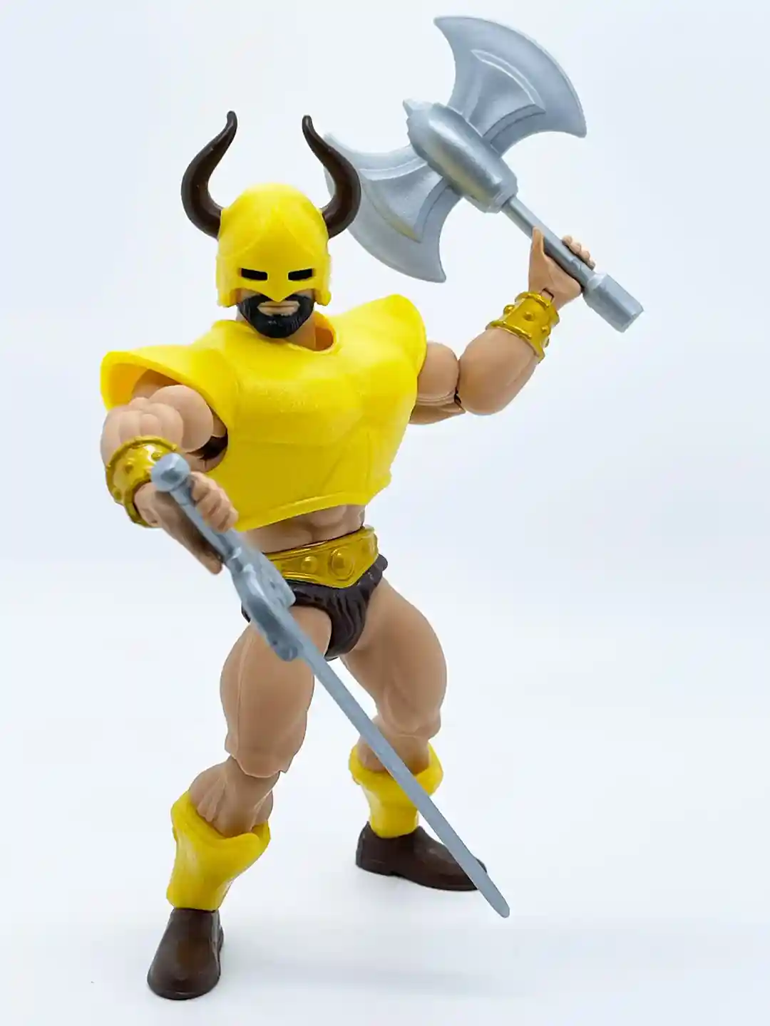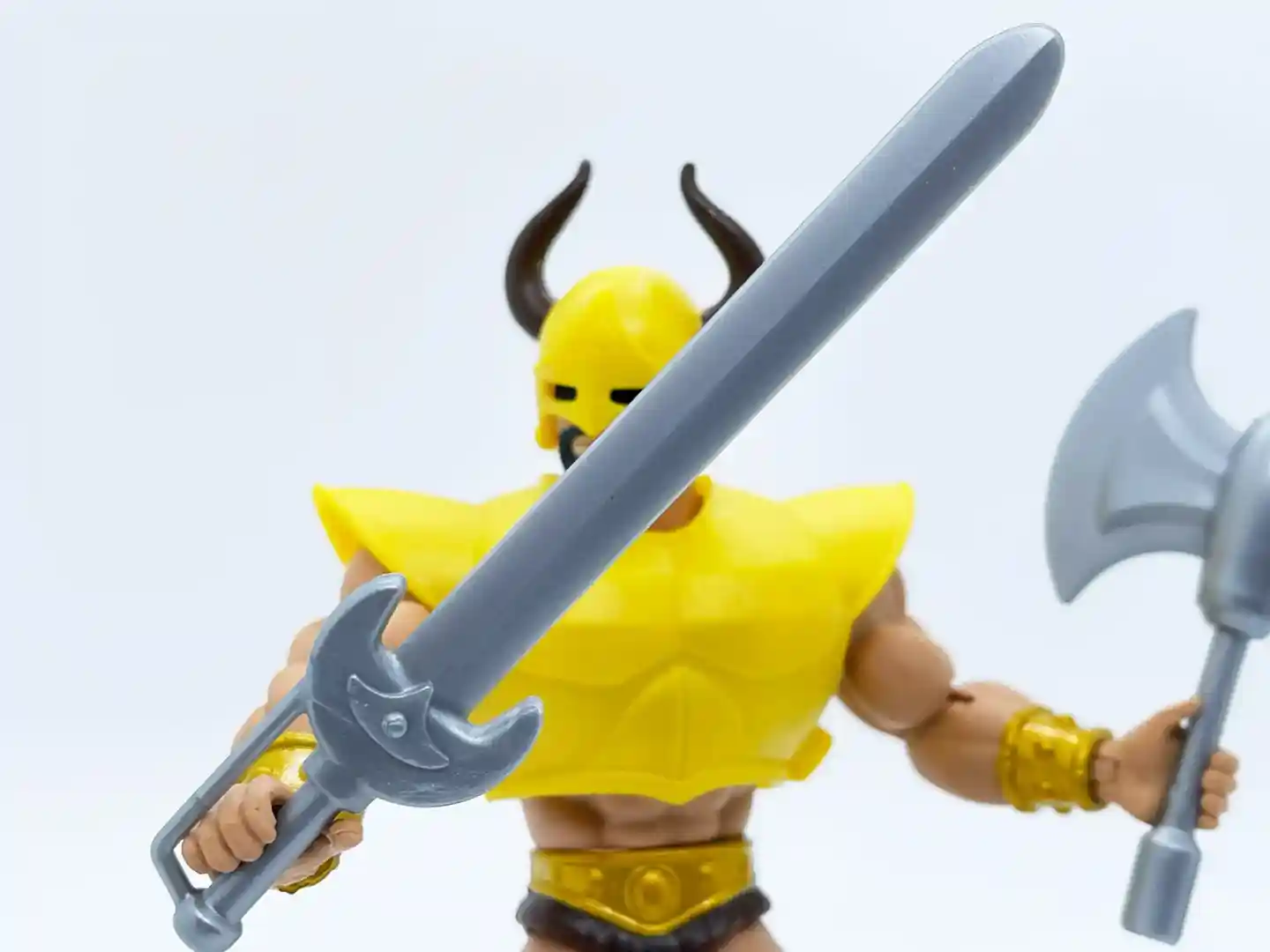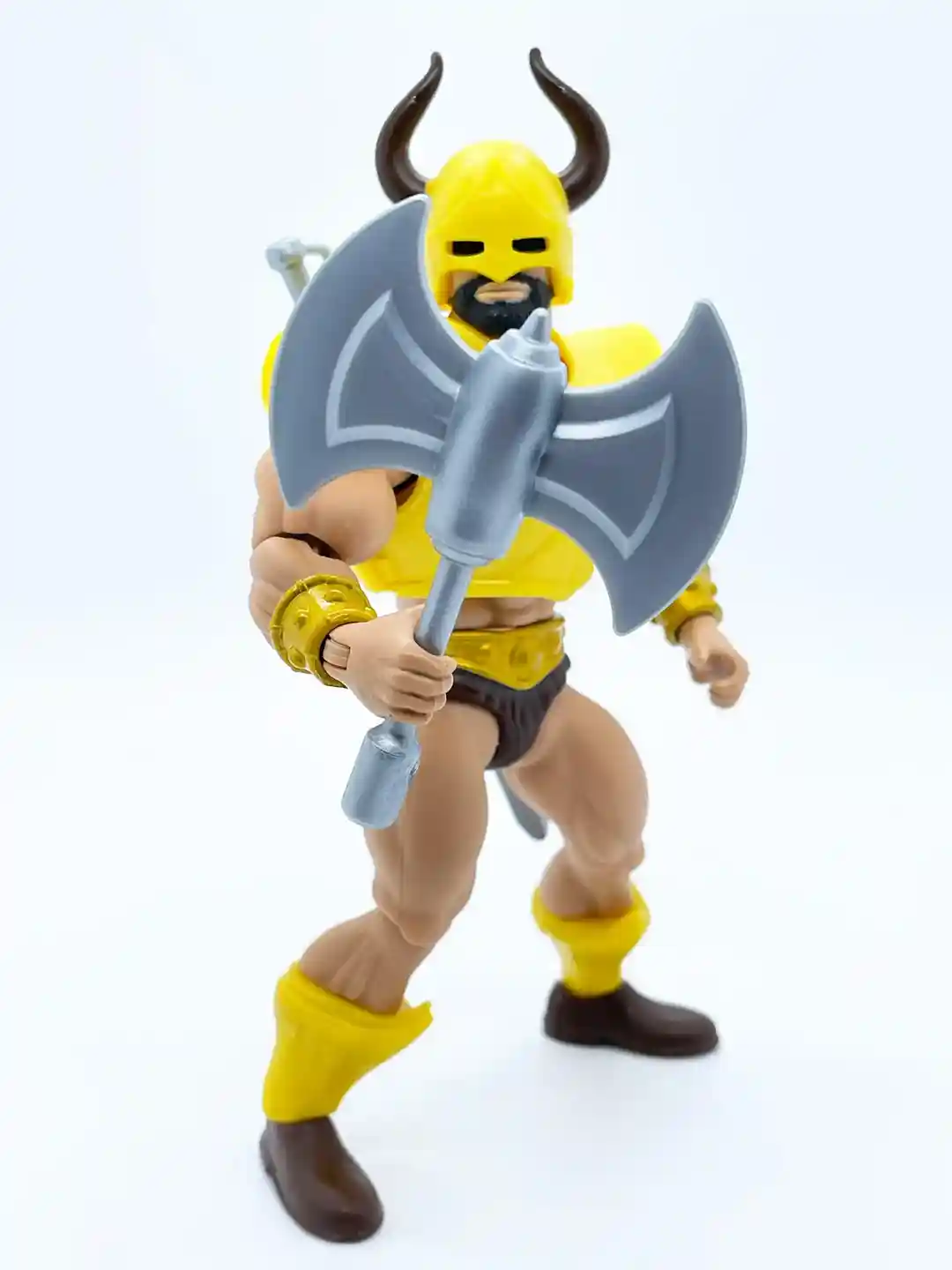 Complete with his bright yellow armor, and Viking horns, Kol-Darr’s design comes straight to us from the 1980’s He-Man and the Master’s of the Universe Filmation cartoon!