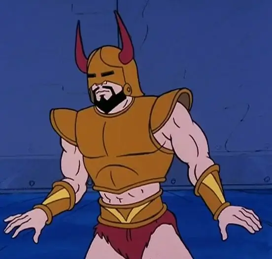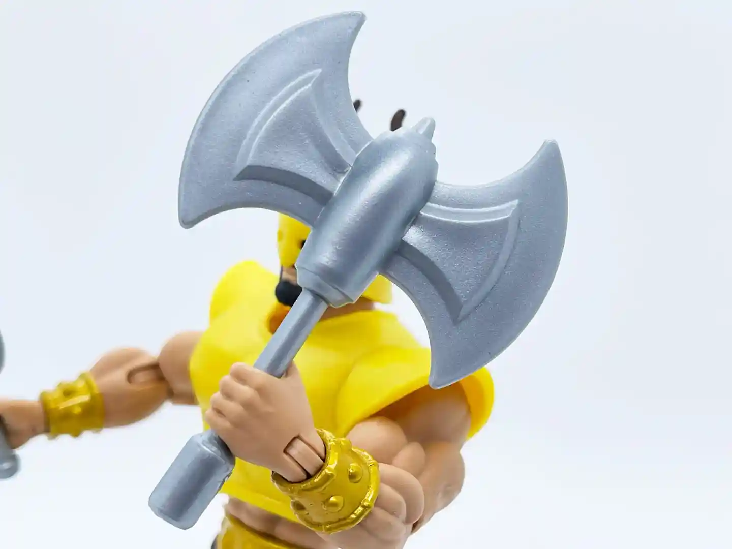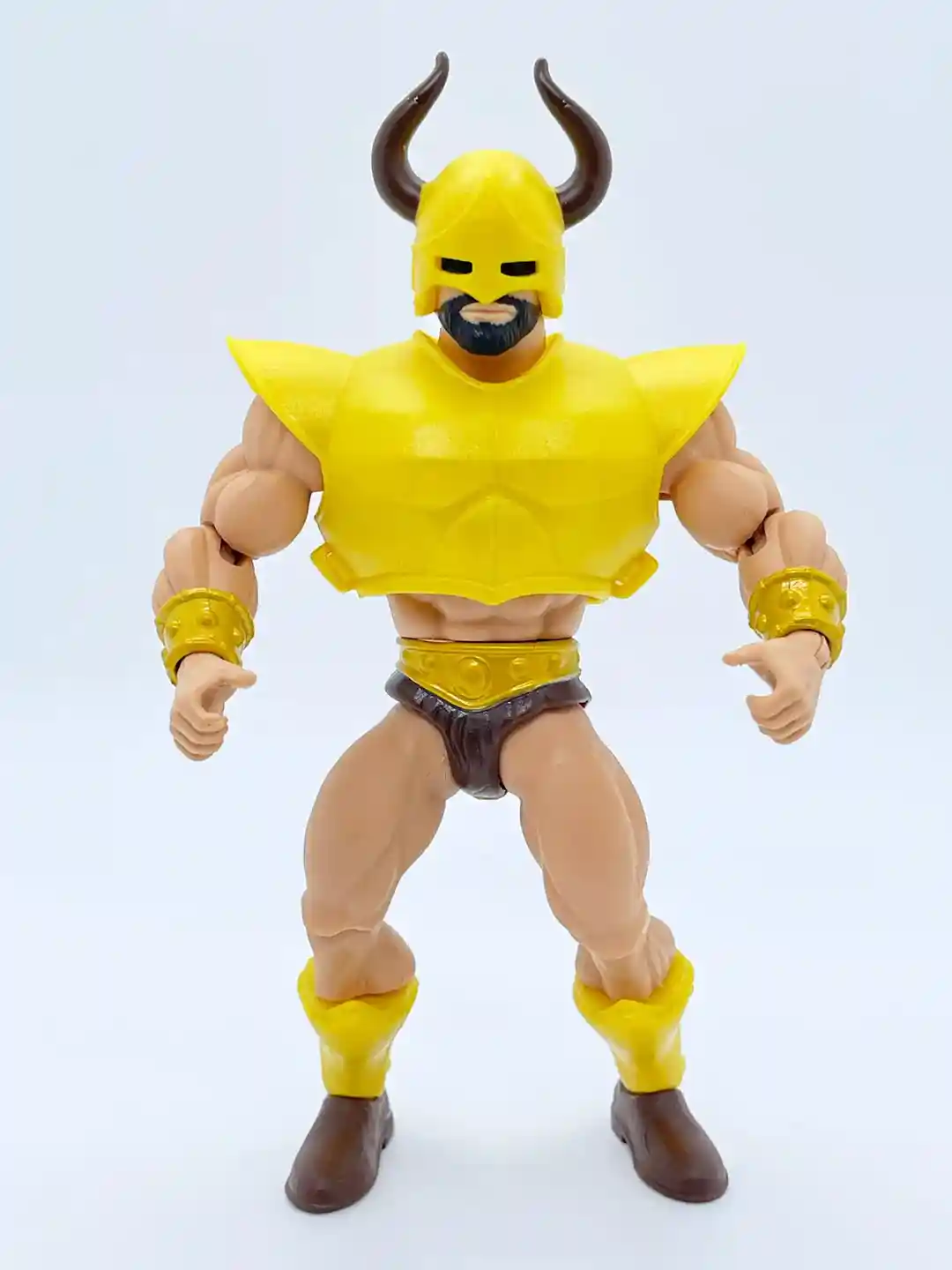 Complete with his bright yellow armor, and Viking horns, Kol-Darr’s design comes straight to us from the 1980’s He-Man and the Master’s of the Universe Filmation cartoon!