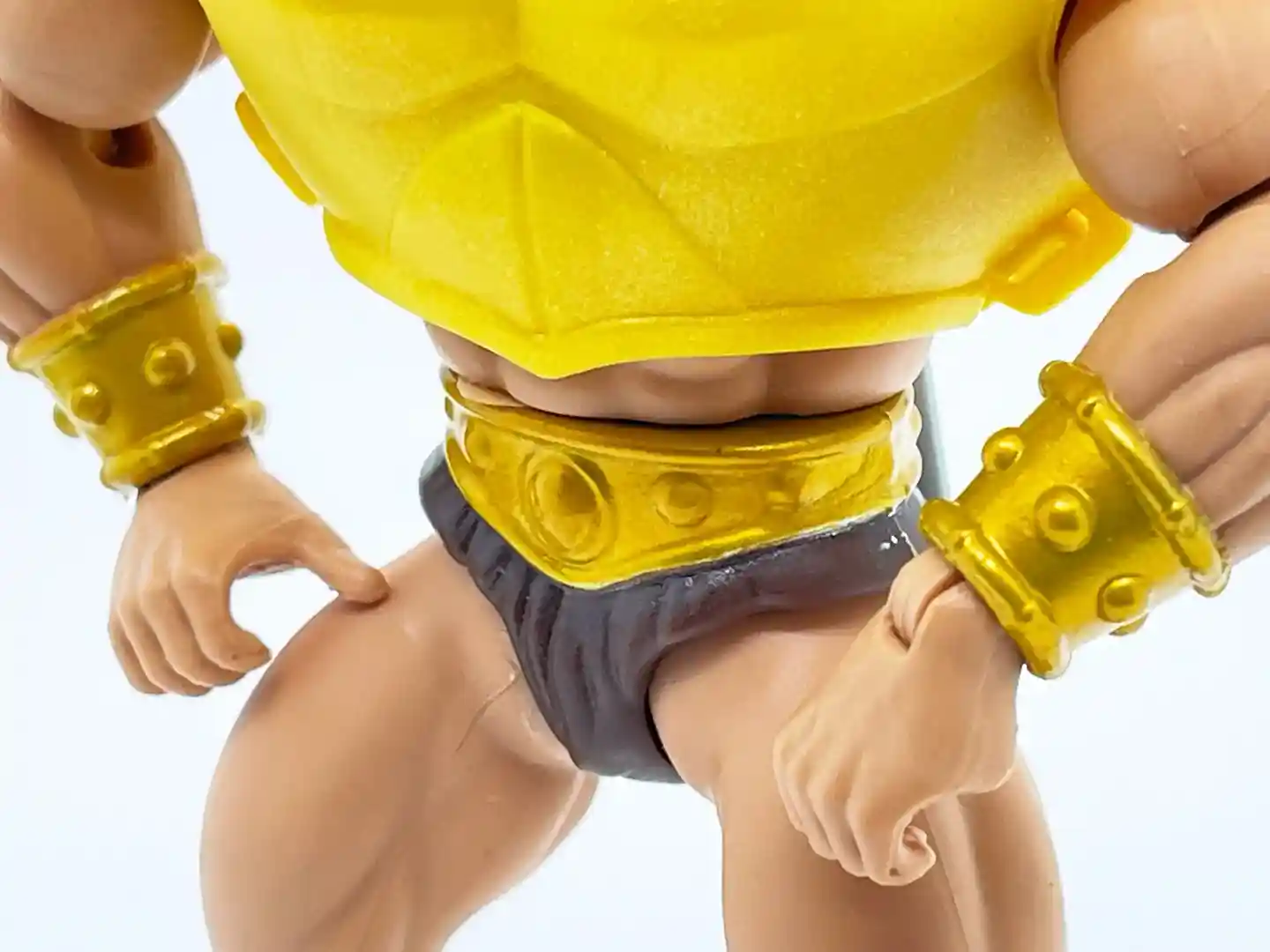 His paint applications were not so tight as you can see alittle bit of overlap on the belt paint to the shorts. The gold colored paint on his wrist bracers and belt however with very nice looking.