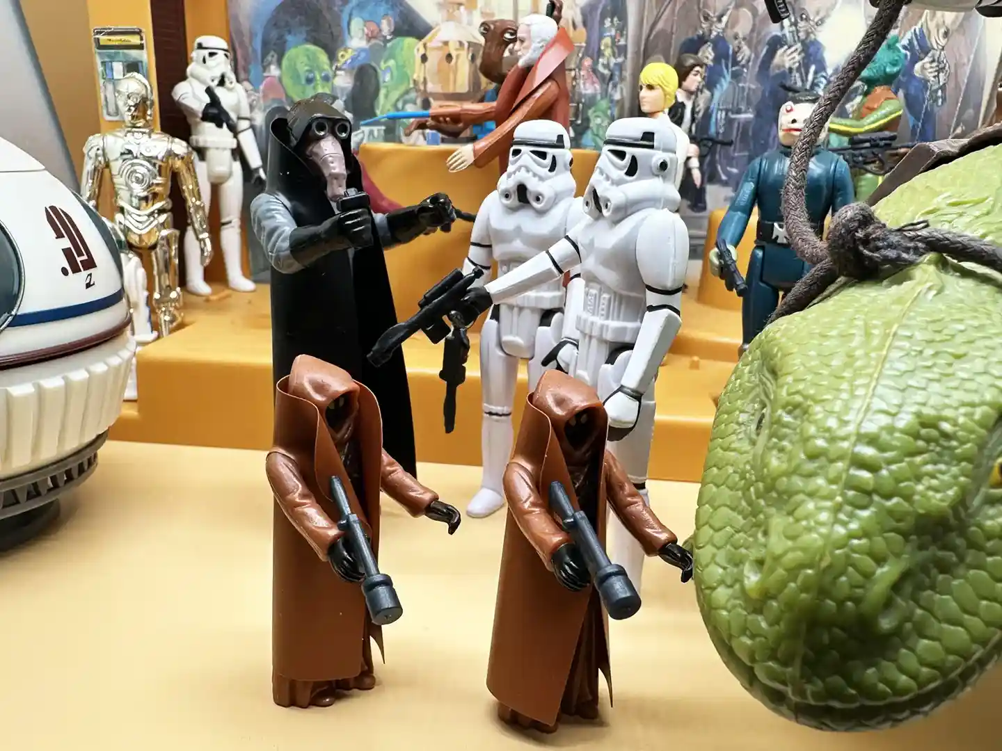 Garindan, or the Long Snout Spy and CZ-3, Sand Crawler droid are two cool characters from the original Star Wars A New Hope movie. Garindan, or the Long Snout Spy as some people like to call him, was featured in Star Wars a new hope, spying on Luke and Obi Wan as they try to hire Han Solo to pilot them to Alderann. Garindan reports to a Storm Trooper outside the Cantina and allows them to be followed to Han Solo’s hangar, where the Millenium Falcon awaits them.