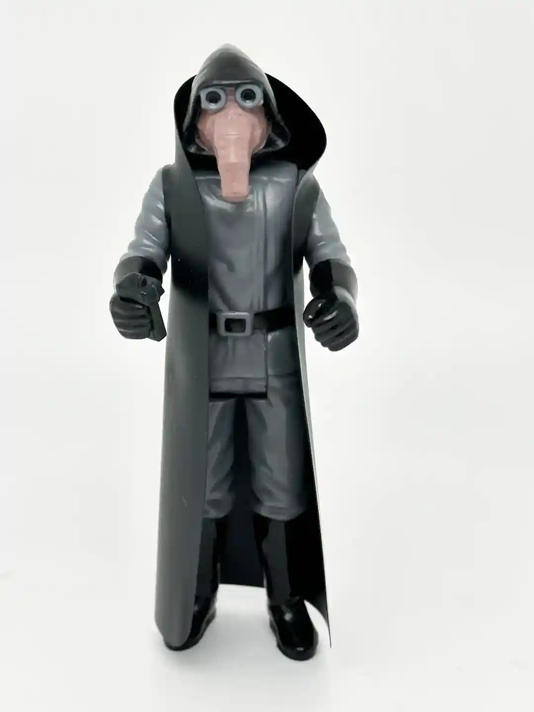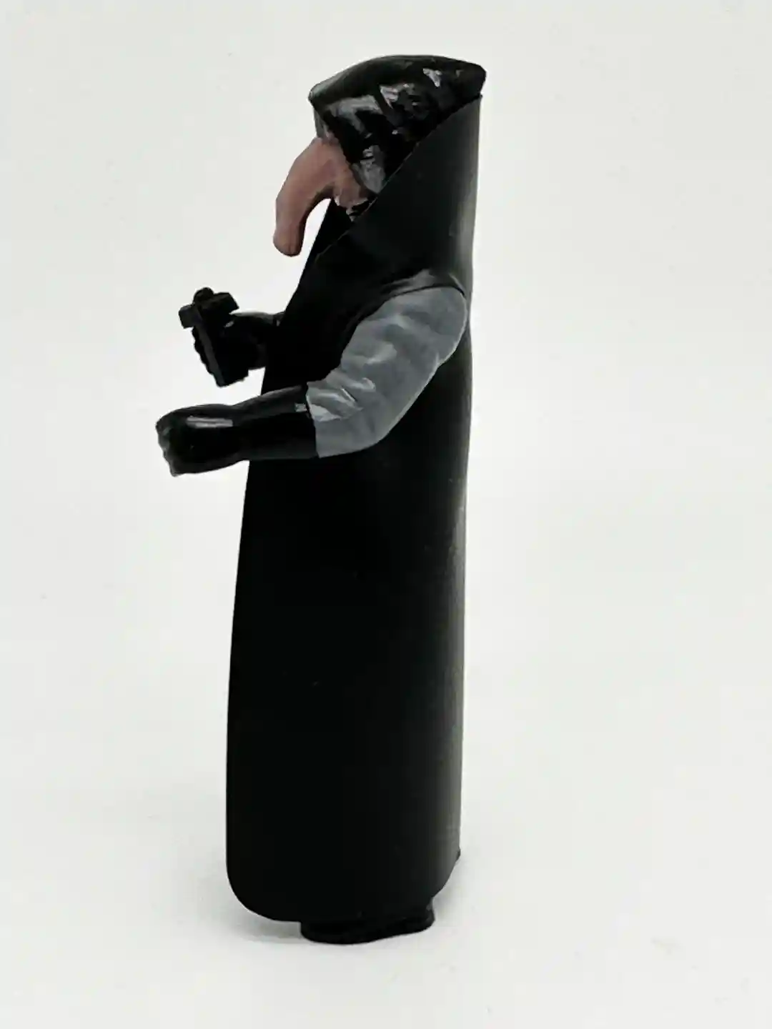 Stan Solo did an amazing job creating the long snout spy! He looks like he stepped right out of 1977! Complete with a black vinyl cape, he comes with a communicator just like that of the Cloud Car Pilot but in black plastic. His outfit is grey with a black belt, black gloves and black boots. Garidan sports his long snout, grey googles and black hood over his head. He looks very reminiscent of the Death Squad Commander but is a completely unique sculpt! They quality, look and feel of this figure is top notch and feels just like real vintage Kenner figures!