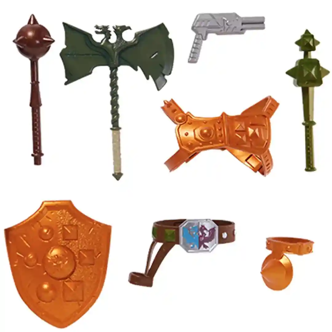 In this new Masterverse figure, Two-Bad sports his classic look with his signature orange armor and a very cool spiked right shoulder armor. Baddrah’s side is a an amazingly sculpted piece showing off the detailed scaled arms and legs with ridges running down the sides. Tuvar is a bit simpler and, like Baddrah, he has a great head sculpt as well. His boot and glove are also very interesting pieces that have an armor-plated look with lots of rivets to hold them together. The rest of his arms and legs, are also all brand new sculpts and unlike any of the other Masterverse figures that have come before them.