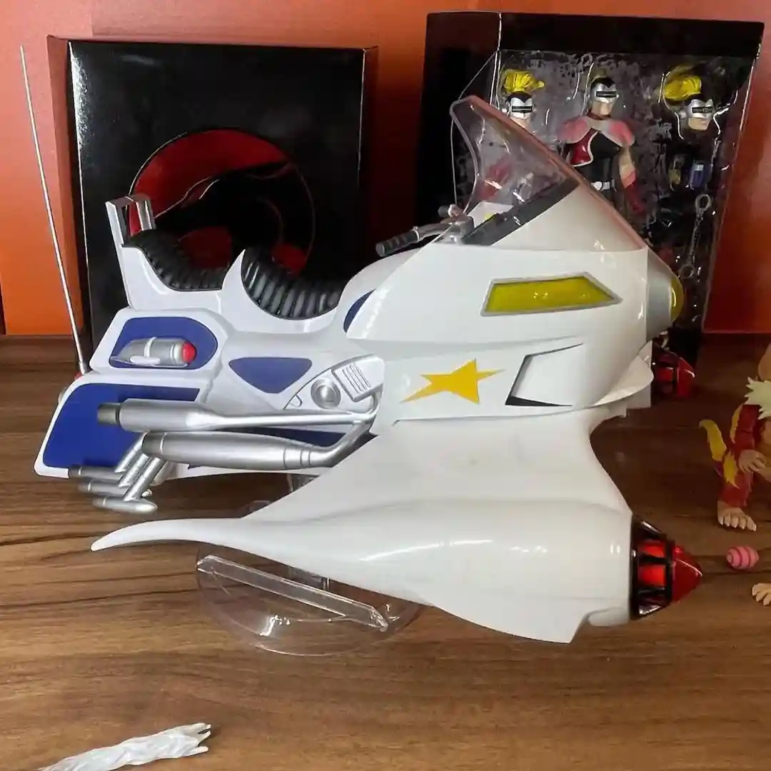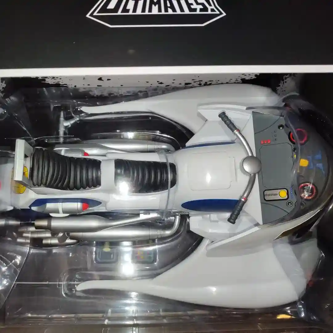 It is capable of seating up to three people. Mandora uses it to patrol the galaxy as well as travel to and from planets such as Third Earth and the Grey Penal Planet. The bike is also capable of carrying and transporting convicts to the Prison Planet. The Electro-charger is an extremely versatile and easily maneuverable vehicle. It is capable of interstellar and surface transport, both on land and in the air. The bike can also be controlled by remote control. Once configured with the correct co-ordinates, it can be sent to any part of the galaxy. The bike is also very fast, capable of of covering a lot of distance in a short while. While the vehicle itself does not possess any weapons, it does have a compartment where Mandora stores her Enzyme Catalyzer. The control panel of the bike has an alarm system which gives out a warning signal if Mandora is ever in danger.