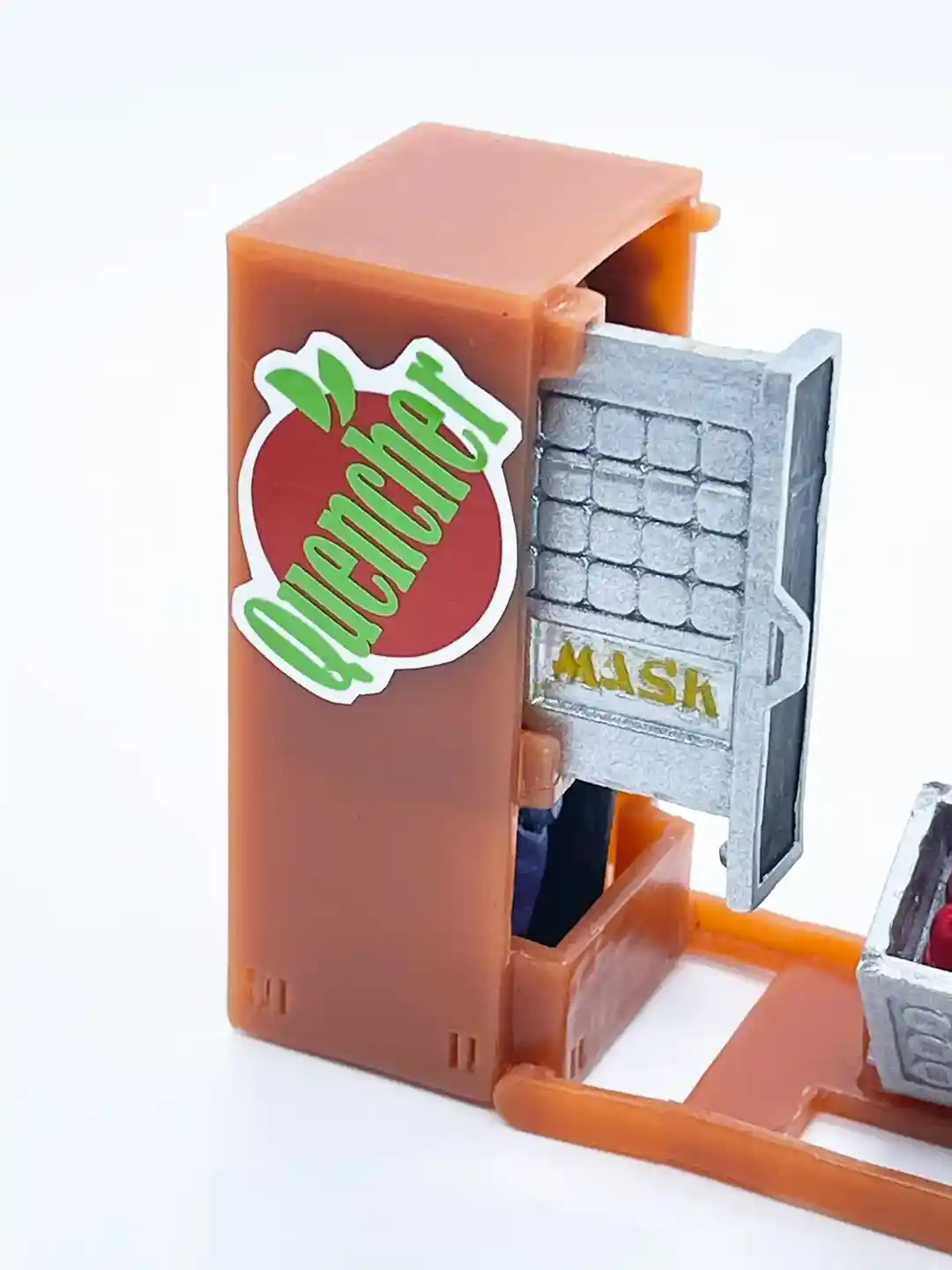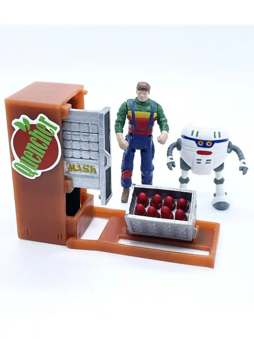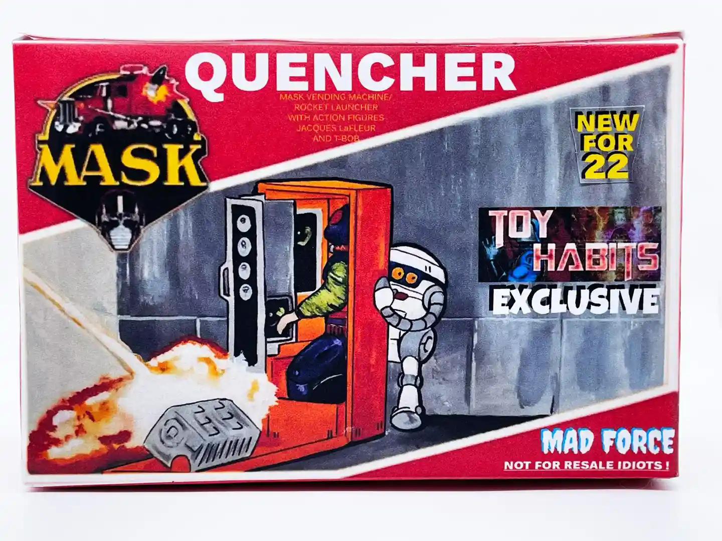Leave it to the creative minds of Mad Force Toys to turn a mild mannered vending machine, a device used keep drinks cold to quench (pun intended) your thirst, and turn it into a rocket launcher! This highly detailed, custom 3D printed vending machine is the perfect addition to your M.A.S.K. collection and your chance to own a one of a kind piece. This Toy Habits exclusive will come with Quencher, Jacques Lafleur (modeled after the concept illustrations, and T-BOB and the best part, it can be customized however you want it so let’s dive into the details!