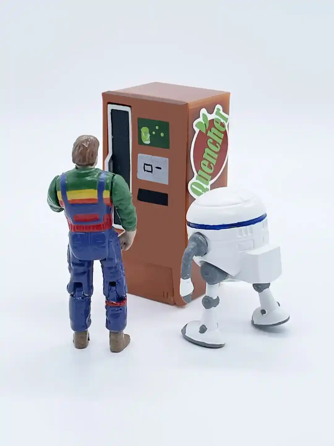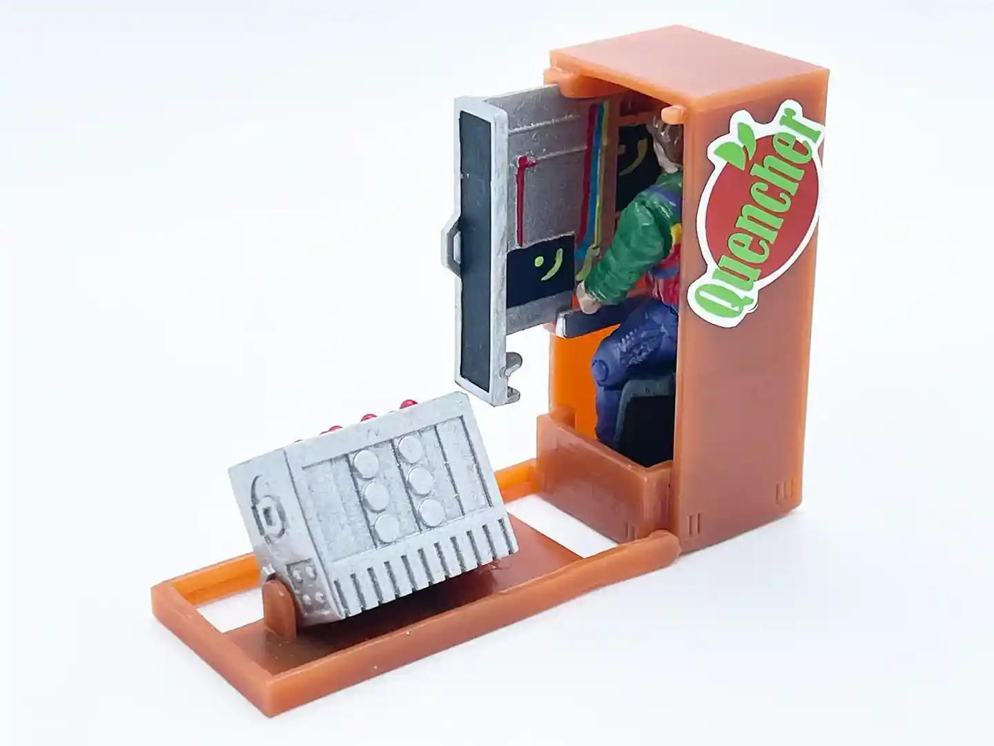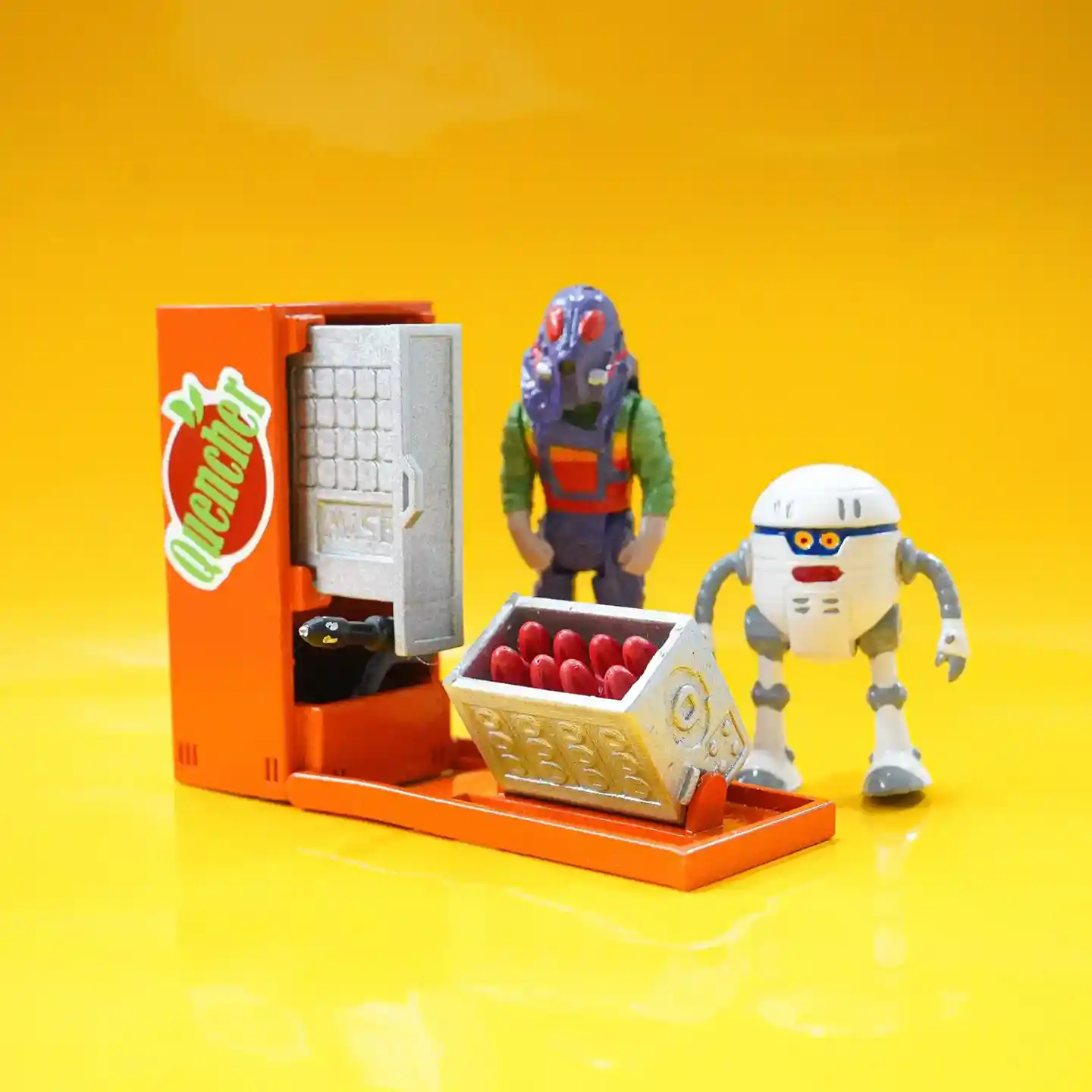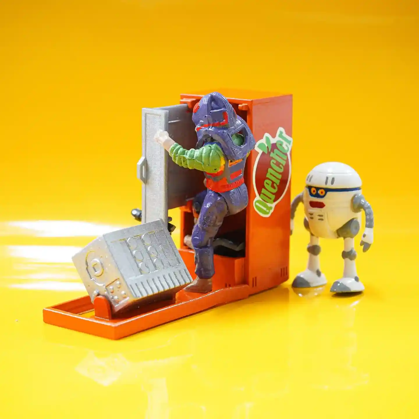 Leave it to the creative minds of Mad Force Toys to turn a mild mannered vending machine, a device used keep drinks cold to quench (pun intended) your thirst, and turn it into a rocket launcher! This highly detailed, custom 3D printed vending machine is the perfect addition to your M.A.S.K. collection and your chance to own a one of a kind piece. This Toy Habits exclusive will come with Quencher, Jacques Lafleur (modeled after the concept illustrations, and T-BOB and the best part, it can be customized however you want it so let’s dive into the details!