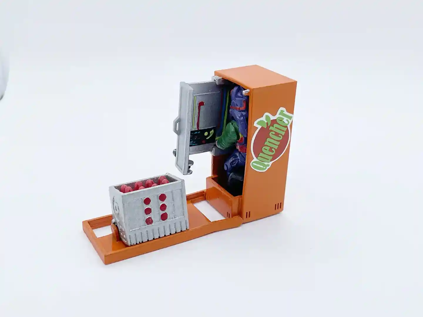The inspiration for Quencher came from the Fog on Boulder Hill episode where you can see an orange vending machine hiding in plain site. While Boulder Hill can convert from a gas station into a bunker, the vending machine is, well, just a vending machine! You can see it in the background as more of a prop piece as Buddy Hawks and Scott Trakker pass right by it but it does play a critical role later in the episode.