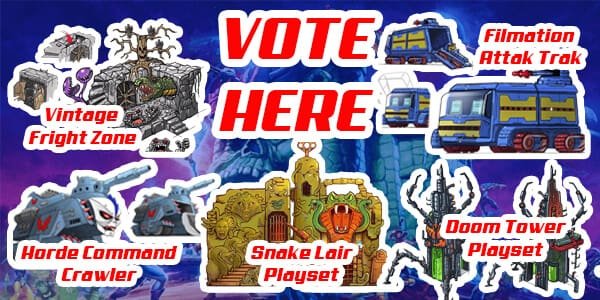Based on the nearly 3500 votes, we are calling the Attak Trak and Snake Lair the unofficial winners of Mattel’s Eternia’s Fan Vote!