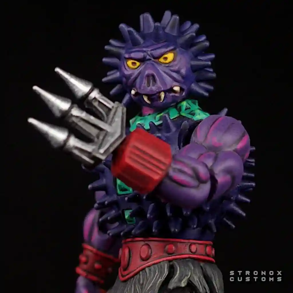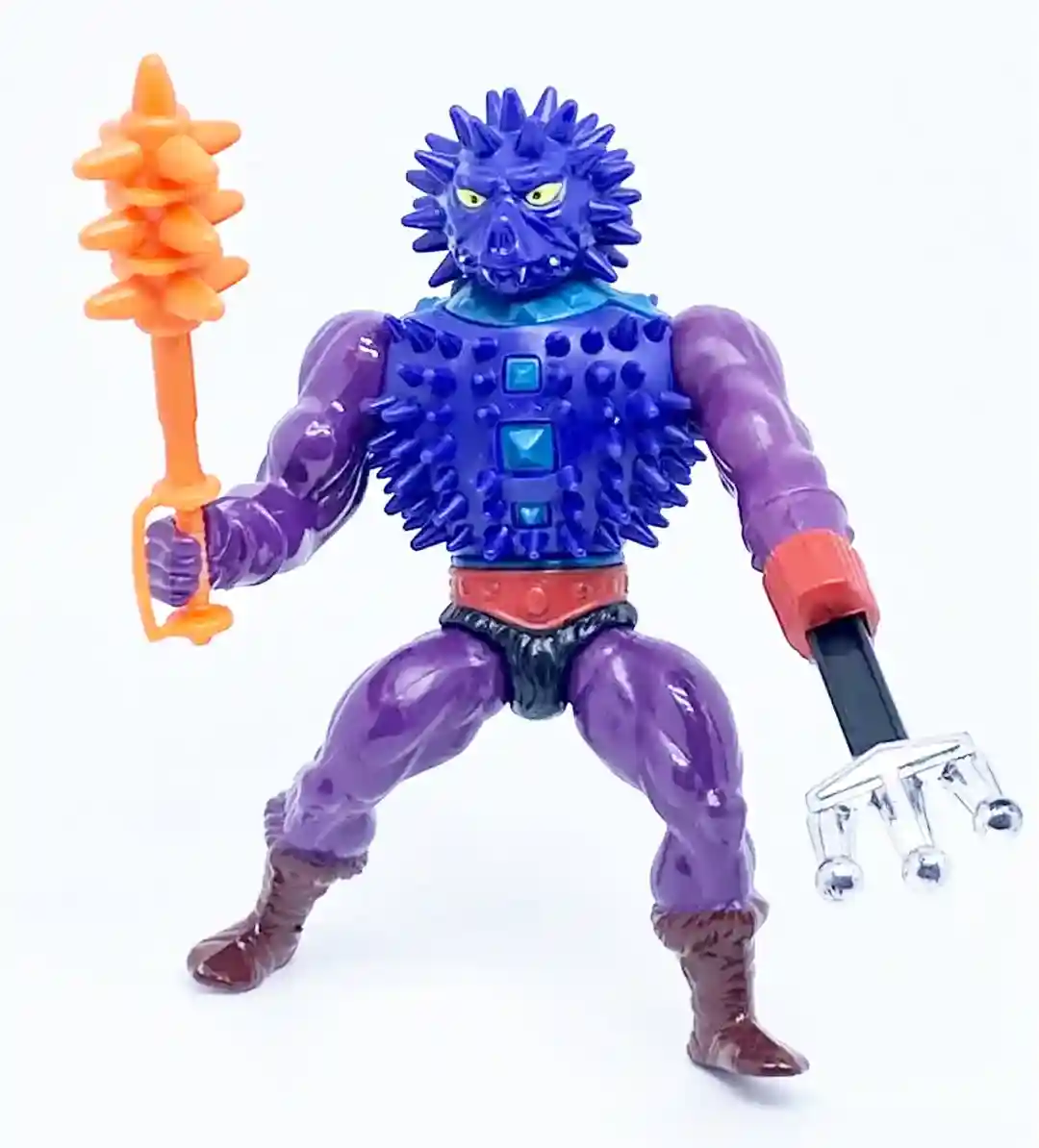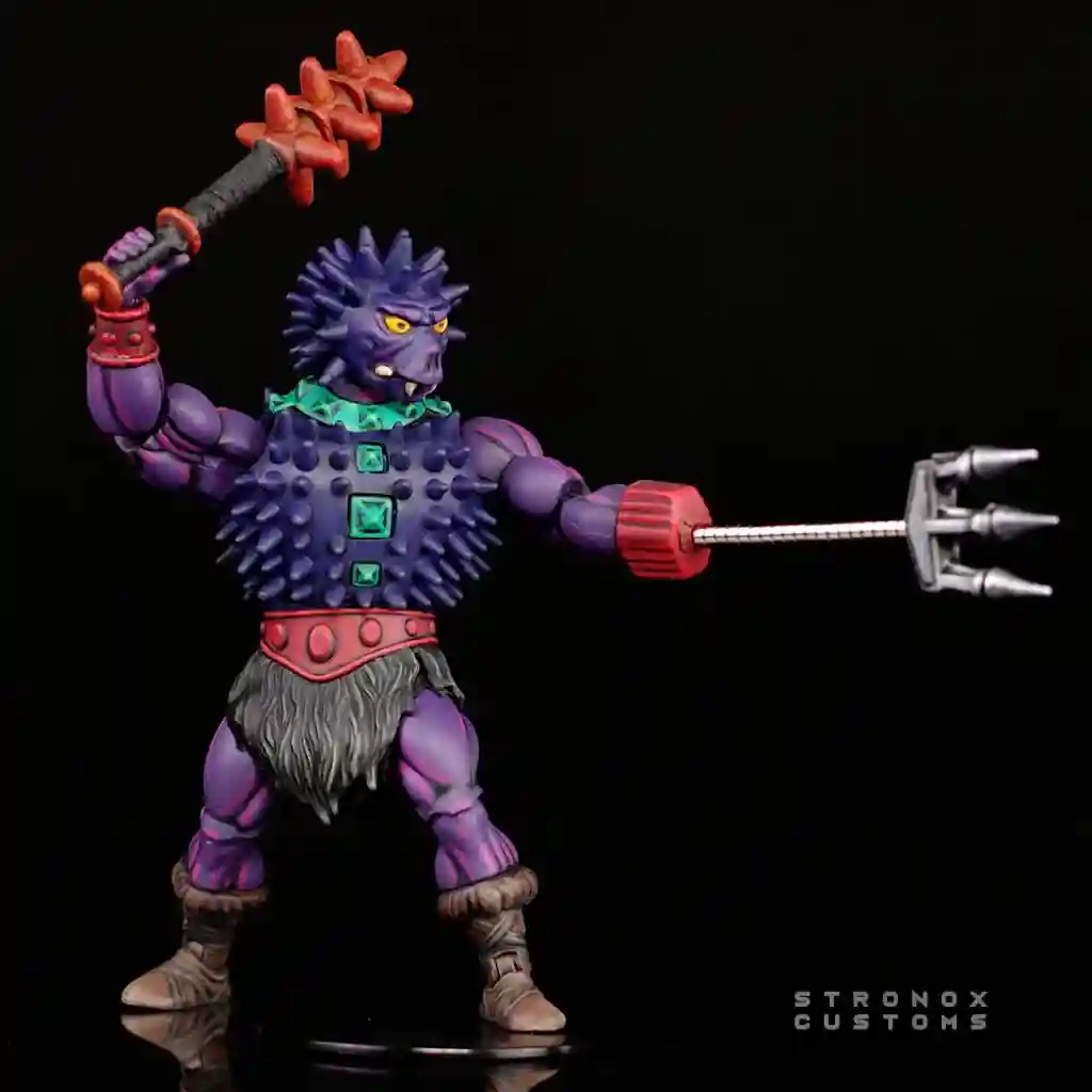 Spikor is one of the most anticipated MOTU Origins figures! One of the last holdouts of Skeletor’s henchmen, Spikor’s head and torso are completely covered in razor-sharp spikes. It was not clear whether the spikes are a natural part of his body or some kind of special armor, until the bio for his 2012 figure confirmed it is an armor magically fused to his body. In place of his left hand is a trident, which can extend and, in some media, fires a laser beam. Spikor was introduced into the Masters of the Universe toy line in 1985. His action figure’s feature is his spring-action waist, which propelled his trident to shoot out of its socket when his torso sprang back.