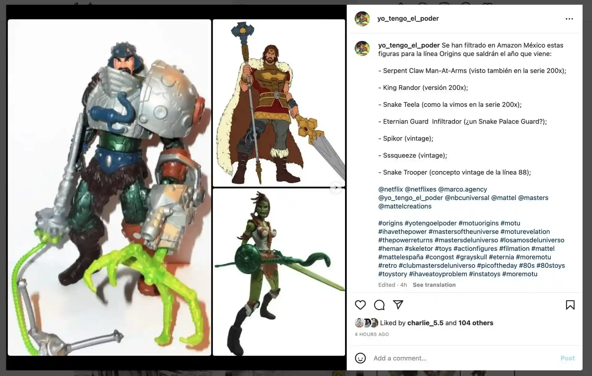 Today, the MOTU artist yo_tengo_el_poder also posted these leaks on his IG page, giving them some creditability. We are unsure if he is also just reposting this information as he has a question mark by the Snake Palace Guard figure. Here is the translation: