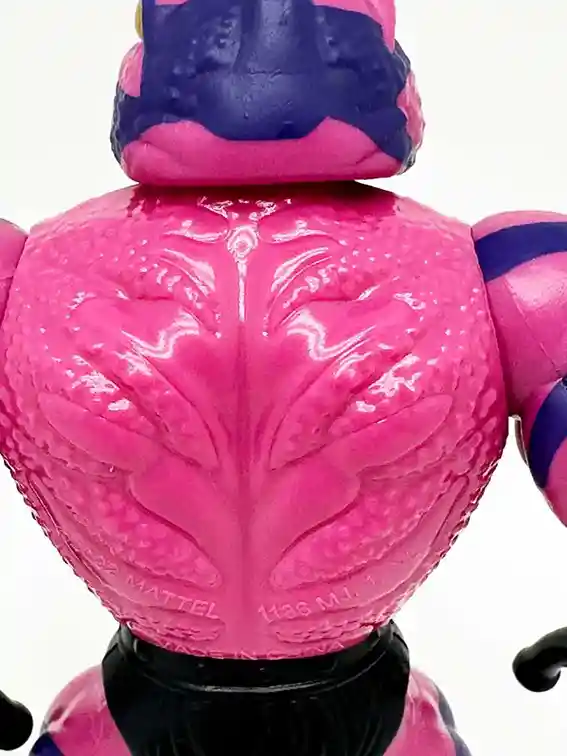 Legs: Tung Lashor has the standard MOTU upper legs in the bright pink skin color with the purple, but his feet have a new sculpt that resemble the vintage Tung Lashor figure.