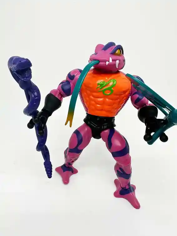 Tung Lashor comes with the standard issue Snake Staff that the rest of the Snake Men usulally come with. It is molded in a bright purple plastic color.