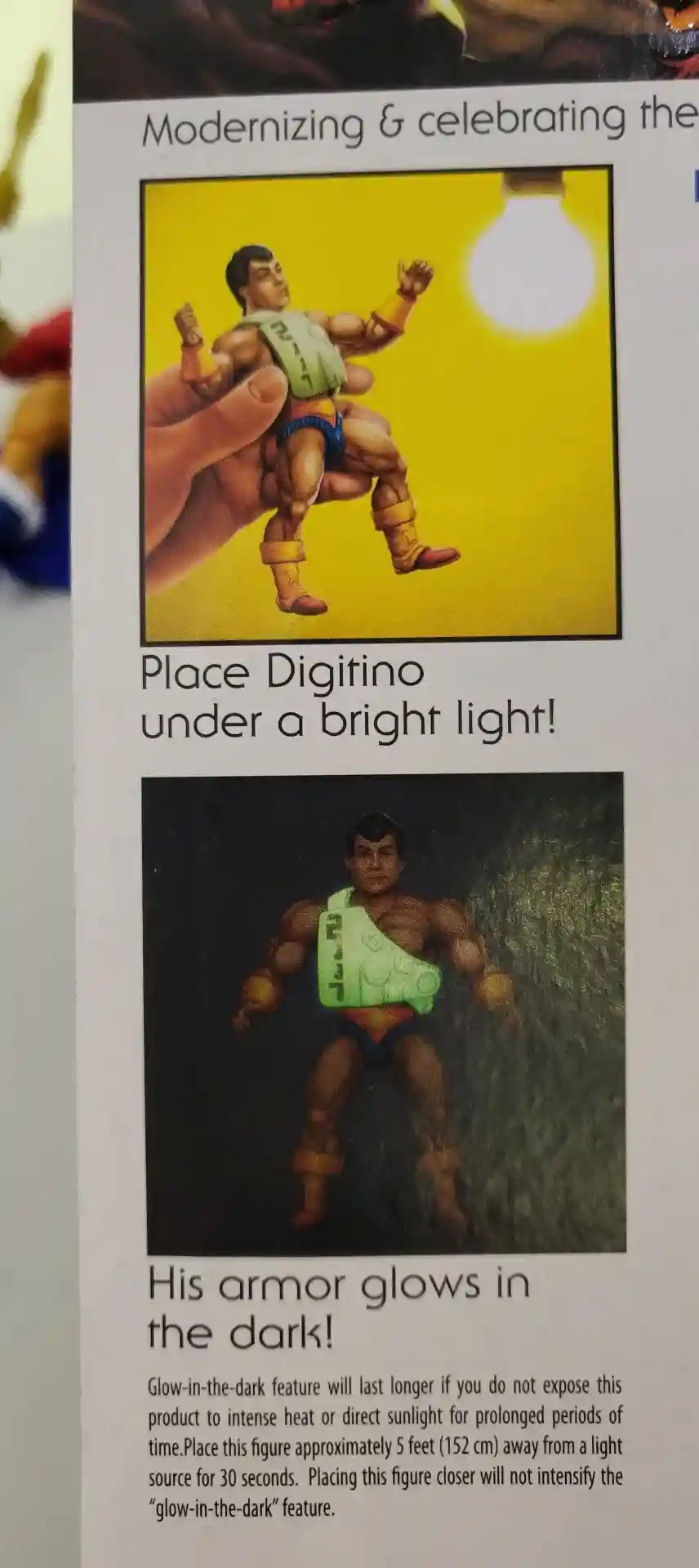 Digitino looks amazing and his armor is GLOW IN THE DARK!!! Unfortunately, the armor does not glow brightly but is cool nonetheless!