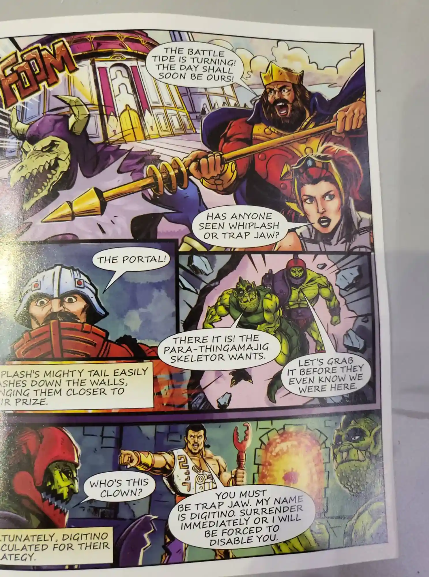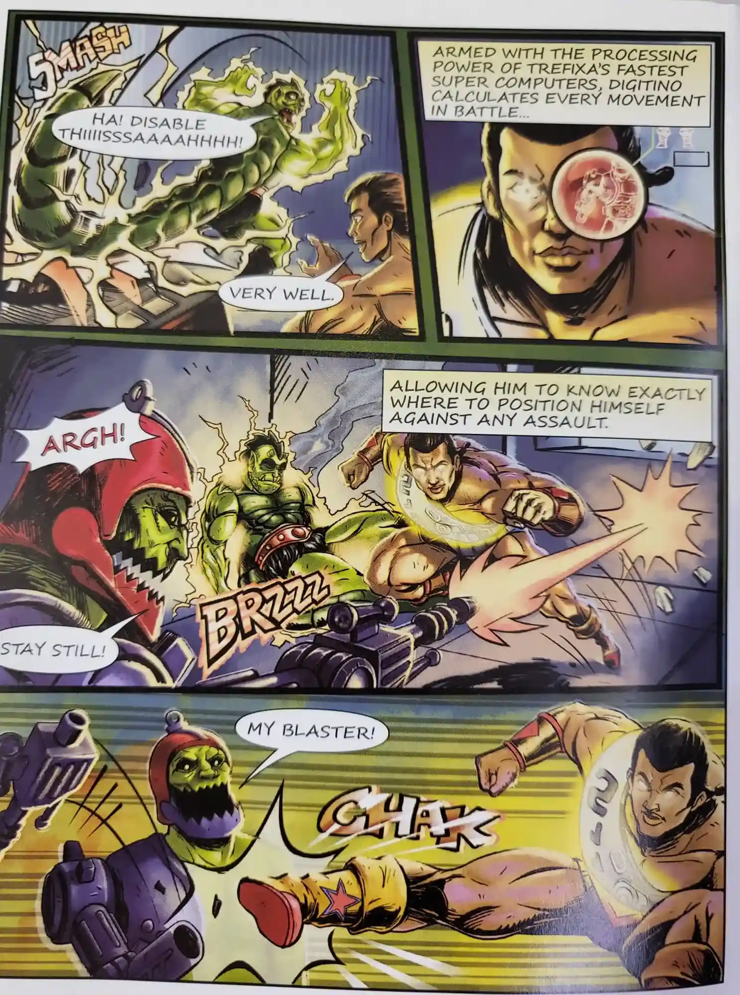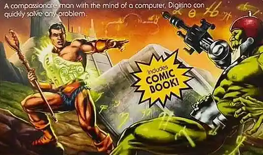 Digitino, our newest character and member of the Rulers of the Sun is shown going up against Mini Comic Trap Jaw.