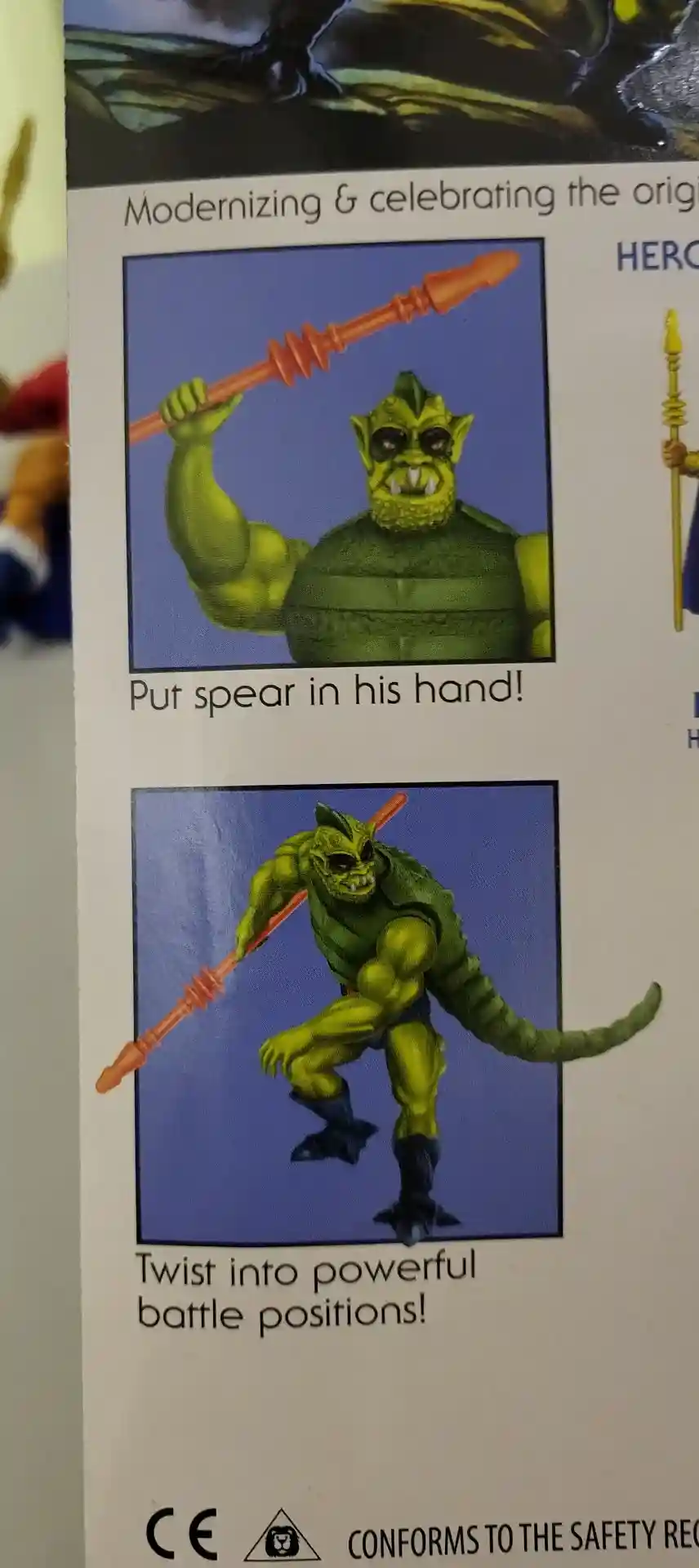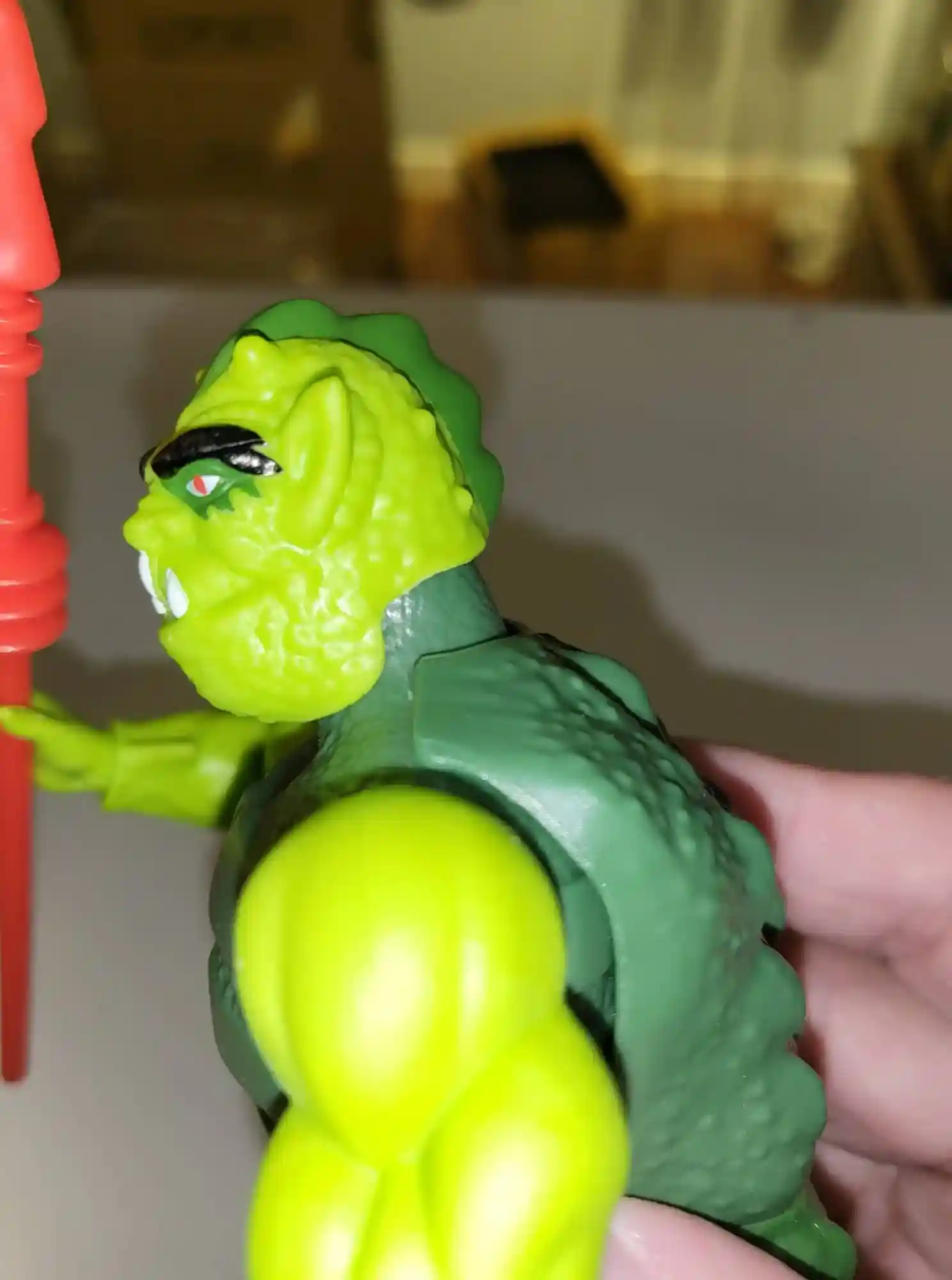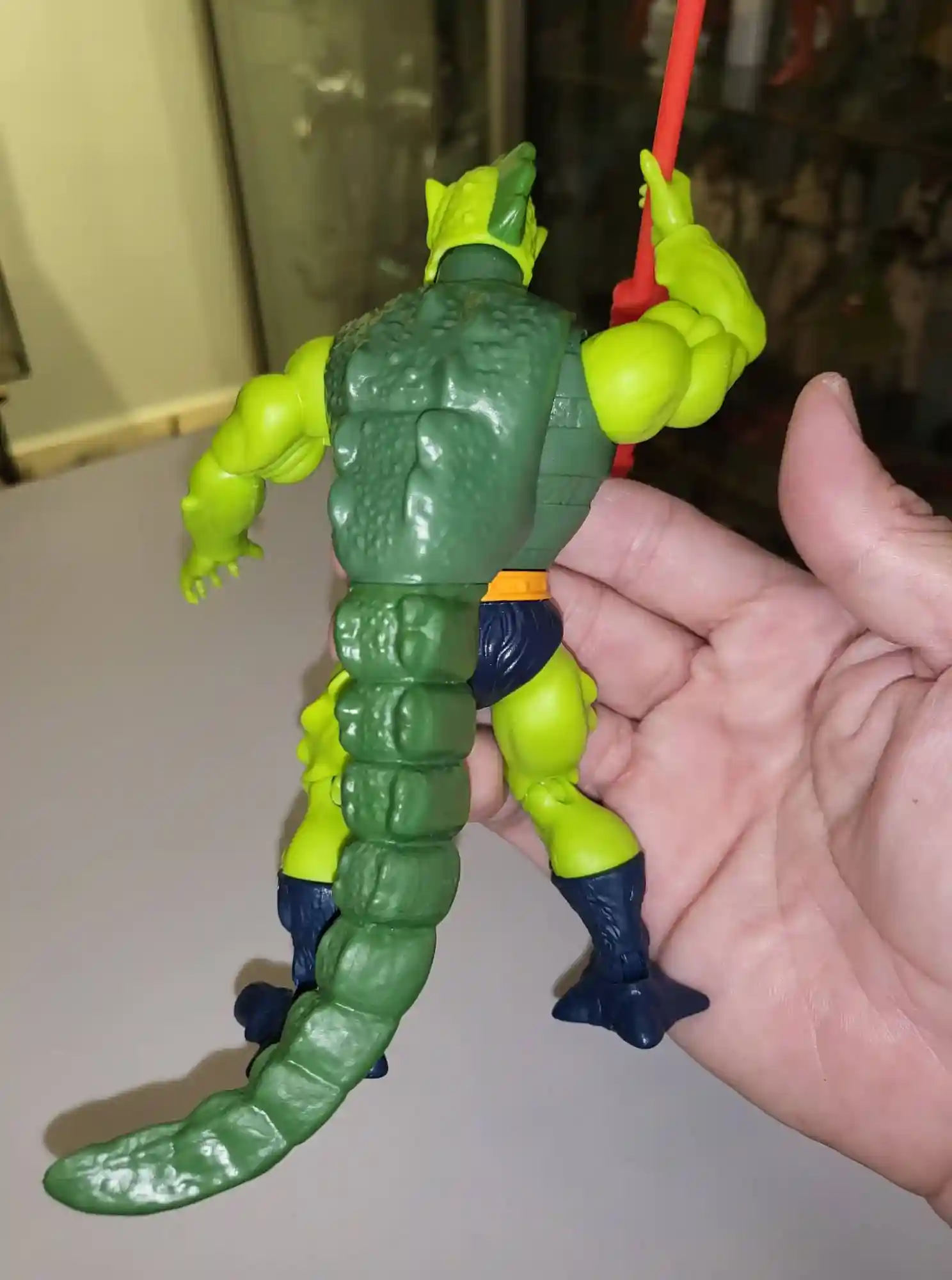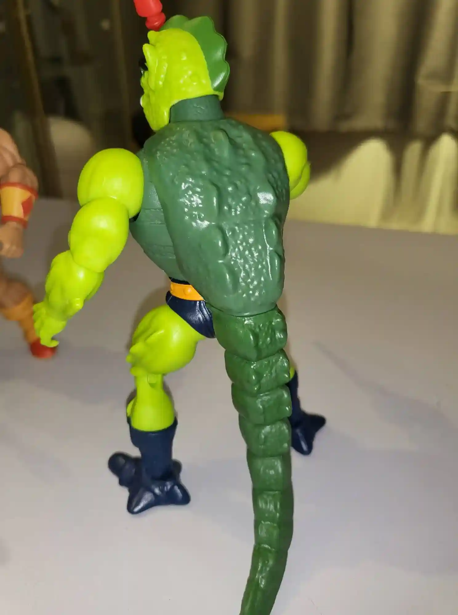 Once thought to be a mythical race, the savage looking Kulataks allied themselves with King Randor after Skeletor attempted to steal Eternium metal from their mines. Supplying the Masters of the Universe with this precious metal, the Kulataks helped build a new prison for Skeletor’s Evil Warriors. King Chooblah later joined Randor’s new Eternian Council, helping to unify the free people of Eternia against evil. Chooblah took up arms himself during the Second Ultimate Battleground, leading three battalions of brave Kulatak warriors against the Snake Men and Horde armies. Their attack was the key to defeating King Hssss and destroying the Horde war machines. Wise leader of the Kulatak warriors, King Chooblah uses his claws and great strength to defeat evil enemies!