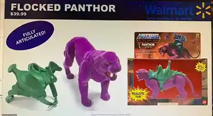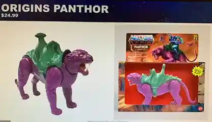 Revealed were another wave of MOTU Origins characters with Mer-Man, Roboto, Stratos, and Ninjor. Mattel did notify fans that the winner of their fan choice contest was Tri-Klops and pre-orders will go live at some point here. Deluxe Ram-Man was showcased as well with packaging, weapons, and how mini-comics will be included with the figures. We saw not one, but two Panthor’s revealed with a normal and a Walmart exclusive Flocked Panthor which was fully articulated and has a removable saddle.