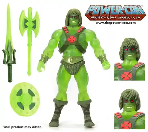 Featuring translucent green skin, 2019 also featured a single carded He-Man variant! He came on the standard MOTUC blister packaging, with brand new character art and bio on the back and cost $55.00