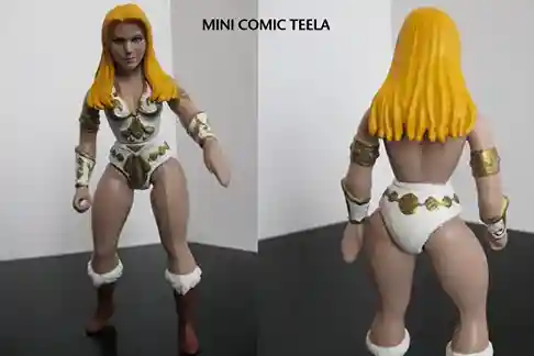 We also broke the news of an upcoming Teela repaint that could possibly be packed with Zoar in a two pack and it looks like this could be it. Teela was also just teased in the Masters of the Universe Origins card art, which means that we are likely to see her in the future. This version is likely to be the blonde Teela version as seen in the photo, as she is seen wielding a sword. You can also make out a huge collar flare in the silhouette, which lines up with the comic. That might also just be her snake armor head dress she is wearing as well. We also sourced a custom to show you what she could look like. Also, the Battleramblog has a wonderful write up on Teela’s history if you want to see that!