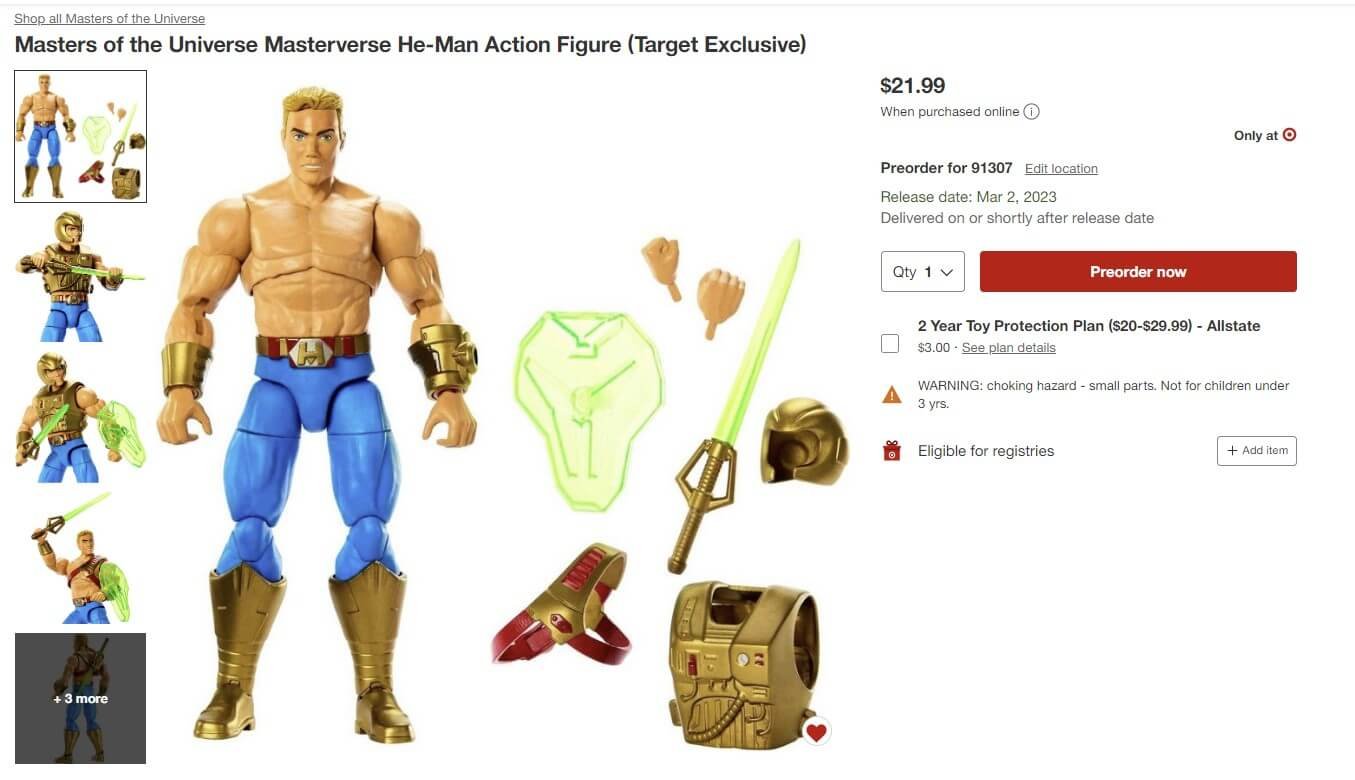 Using the Target app still shows Masterverse Galactic Protector He-Man as a pre-order but he is sitting Target stores now! My suggestion is to go to your local Target today if you can, and start by scanning the bar code in the Price Scanner! It seems likely that the most stores will either have this in the back, or in the process of putting it on the shelf. Ask a nice target employee to look up the DPCI Code: 087-26-4522, and get it from the back of the store if it’s not out. Also you can scan the UPC bar code at the price check kioks and it will tell you what stores nearby have it in stock!