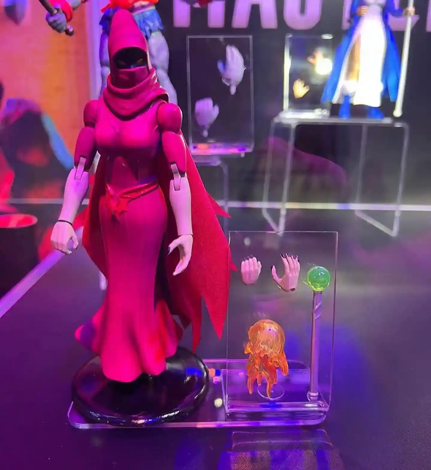 They did a fantastic job capturing the likeness of the Sorceress from the Revelation series! She looks her age so to speak as the previous versions of the Sorceress look a lot younger. She comes with her classic staff, a soft goods cape, and an extra set of hands!