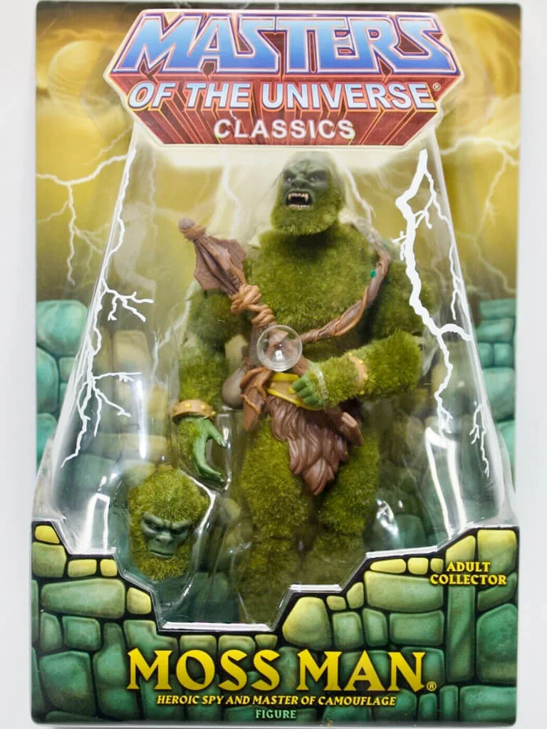 Moss Man is a character from the Masters of the Universe franchise, and he is known for his plant-based powers and ability to blend in with his surroundings. In the MOTU Classics line, Moss Man is a highly detailed action figure that closely resembles his appearance in the original Masters of the Universe cartoon series. Released in 2010, MOTU Classics Moss Man was a wonderful homage to the vintage action figure in 7″ scale.