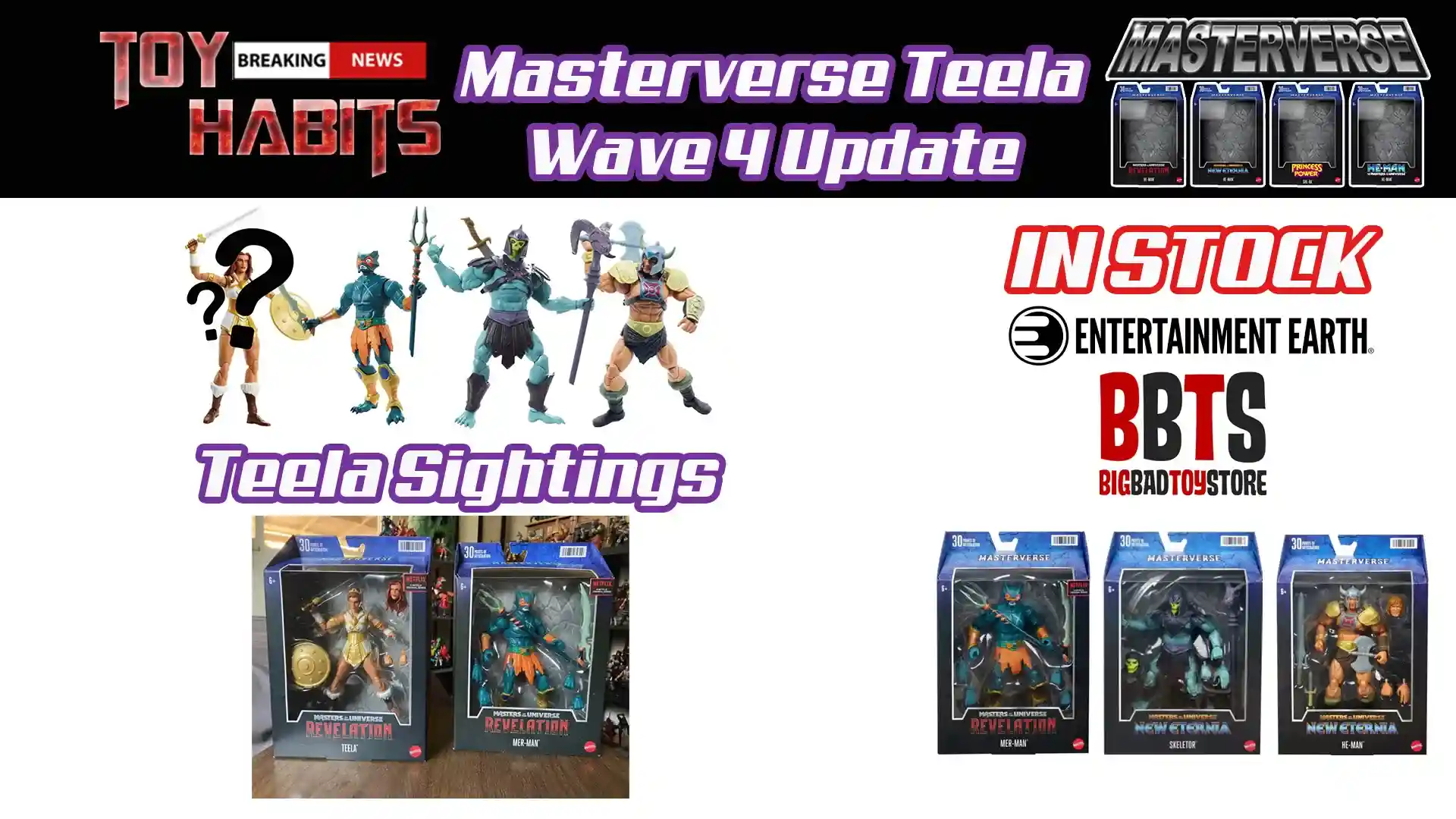 Masterverse Wave 4 Teela has been extremely difficult to locate but it appears that she is slowly showing up in stores but Mer-Man, Viking He-Man, and Barbarian Skeletor are readily available