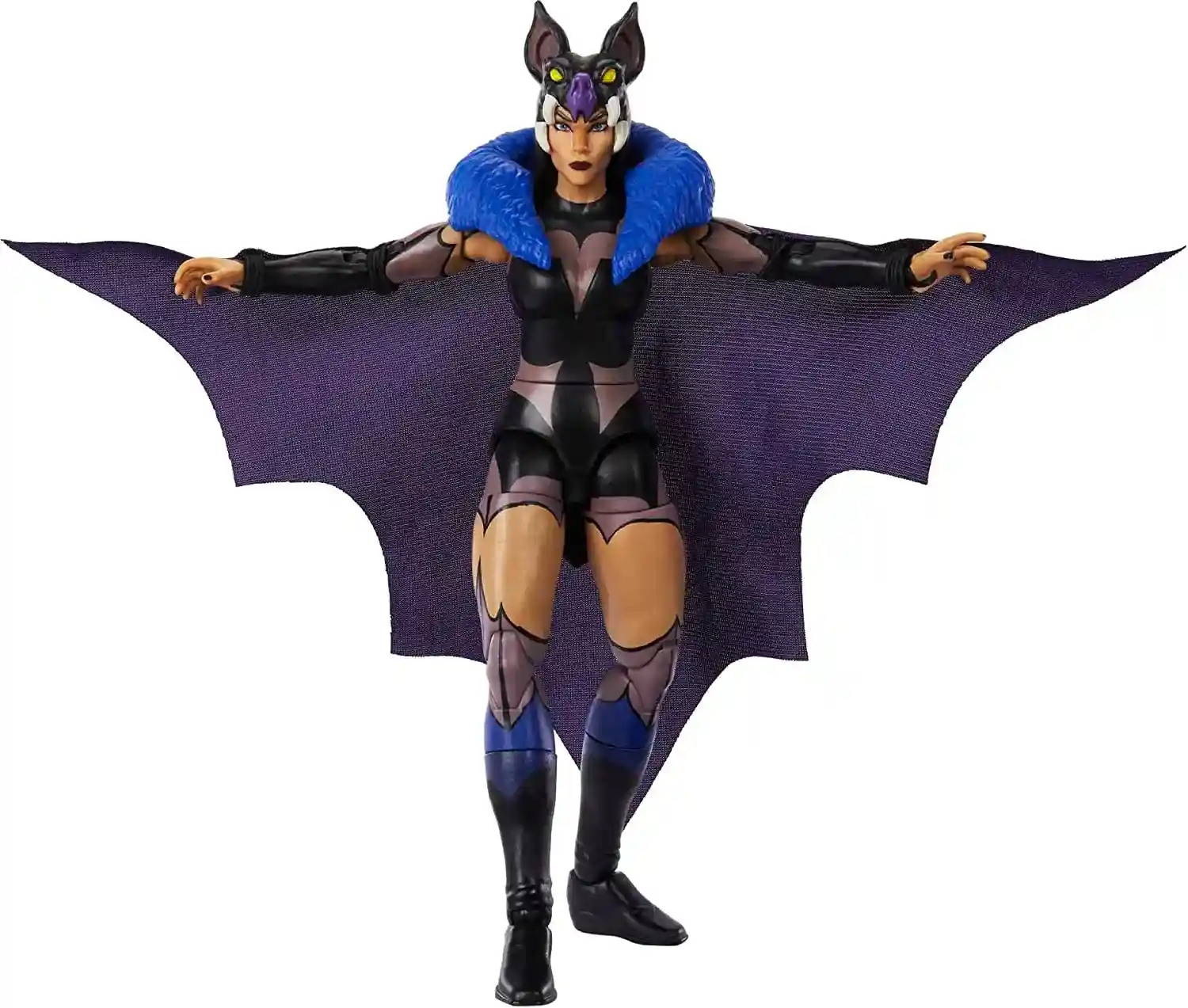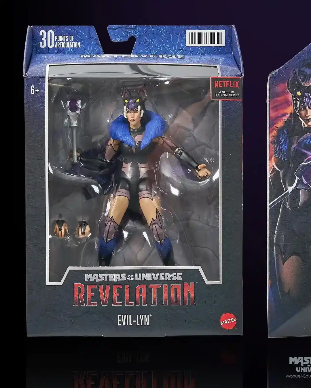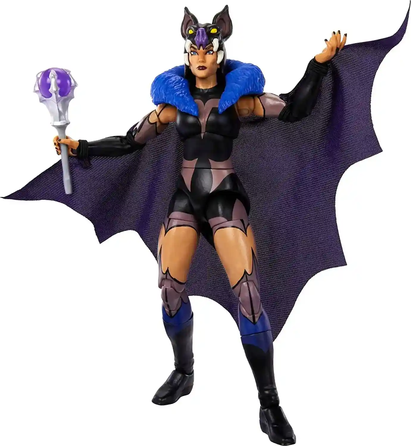 Straight from the Netflix Masters of the Universe Revelation cartoon, part 2, Evil Lyn takes over the Sorceress’ powers and becomes the new ‘Sorceress’. They did not say much about her in the panel other than she comes with a soft goods cape that looks like a bat and a scepter.