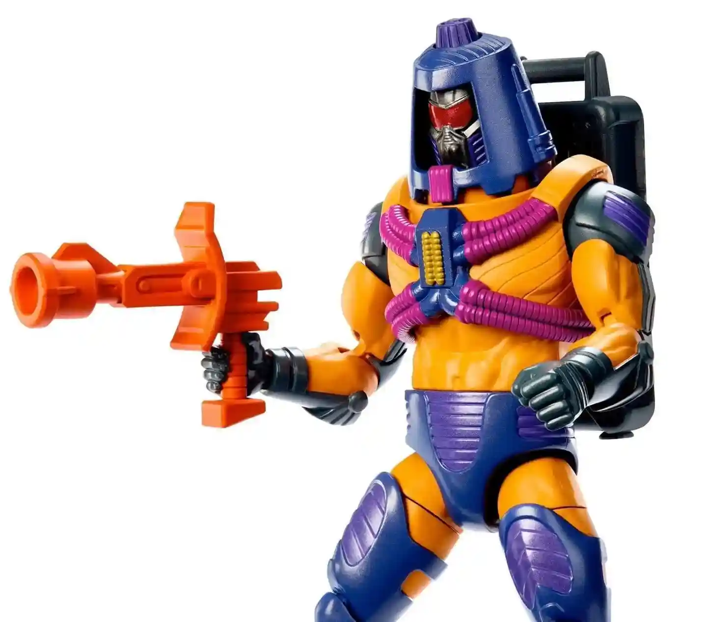 The second figure we are now getting official images on is Masterverse Man E Faces. He was also revealed at this year’s SDCC. We believe that this version of Man-E-Faces will be from the New Eternia line given his pack out! Unless he is featured in the upcoming Netflix animated Revolution series, he could very well be one of the figures included in the line as Kevin Smith said that they are “pulling time honored characters off the shelf” for this one! Either way, the figure looks fantastic! His faces still spin plus he also comes with extra faceplates in a gear box for his acting side hustle. Top it off with his classic blaster and an extra set of hands and you have a recipe for a great figure! Not only do you get the classic 3 faces for Man E Faces, but he comes packed with 3 more new ones!