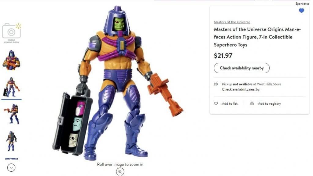We have found the Walmart Listing for Man E Faces, although at the moment it shows out of stock, so be sure to save this! Masterverse Man E Faces at Walmart