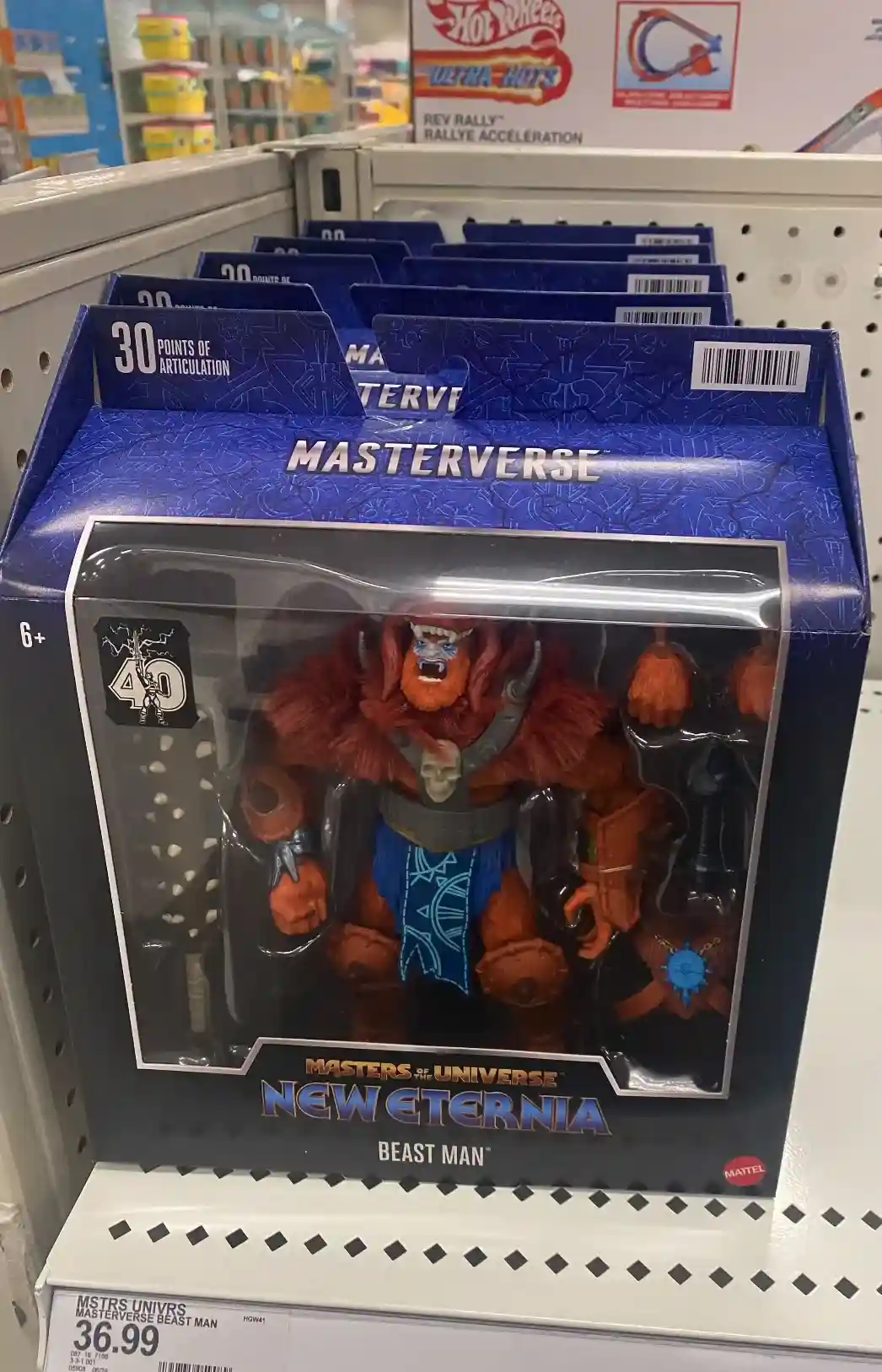 Well in a surprise move by Mattel, looks like Mattel heard us! I am very happy to say that they must have noticed their factory misstep and made a production correction mid-way thru, because guess what folks, today I found several Beast Man’s sitting on the shelf at my local Target and Mattel has corrected the color of his entire body!
