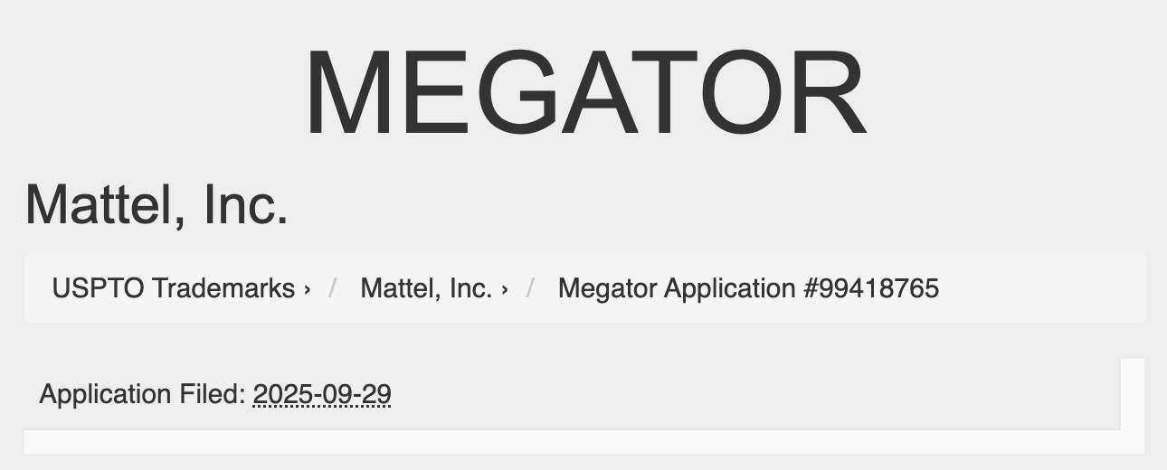 Megator’s trademark had previously been renewed on November 11, 2021, keeping the name secured under Mattel’s ownership. This earlier renewal ensured that the giant villain remained protected for potential future use in the Masters of the Universe brand.